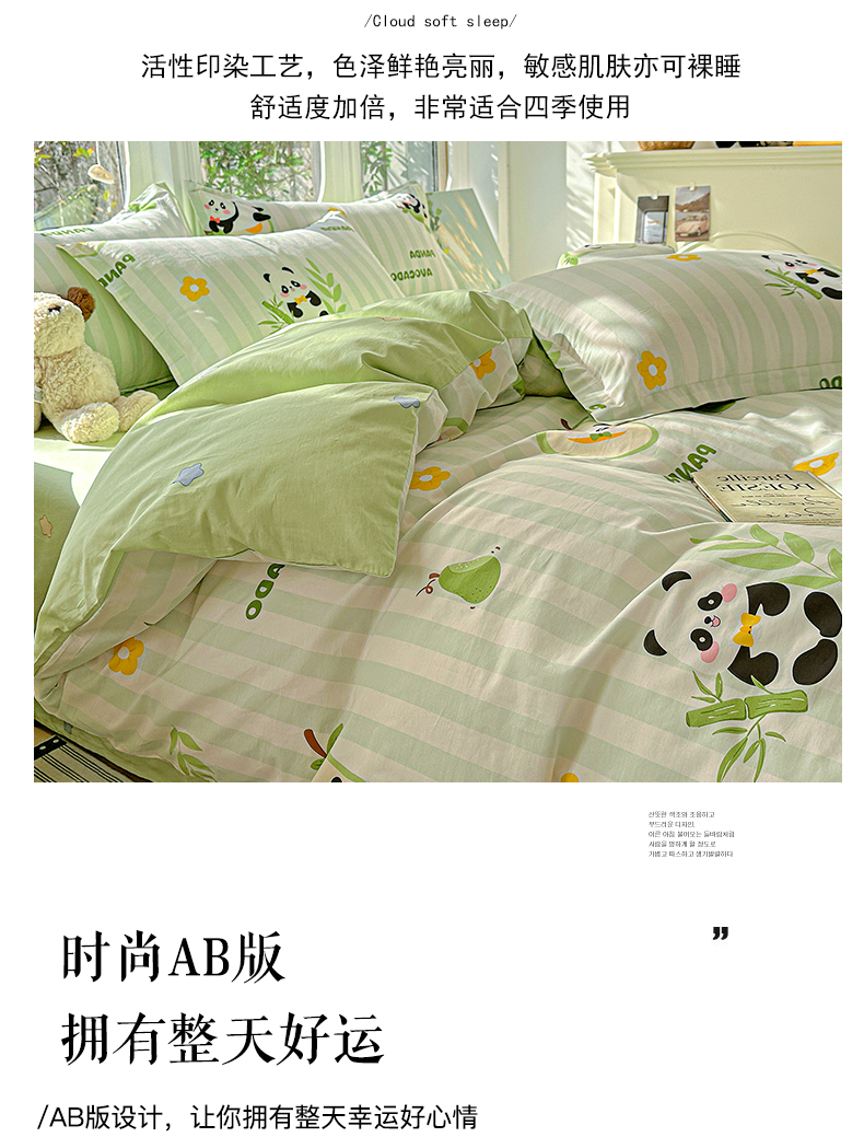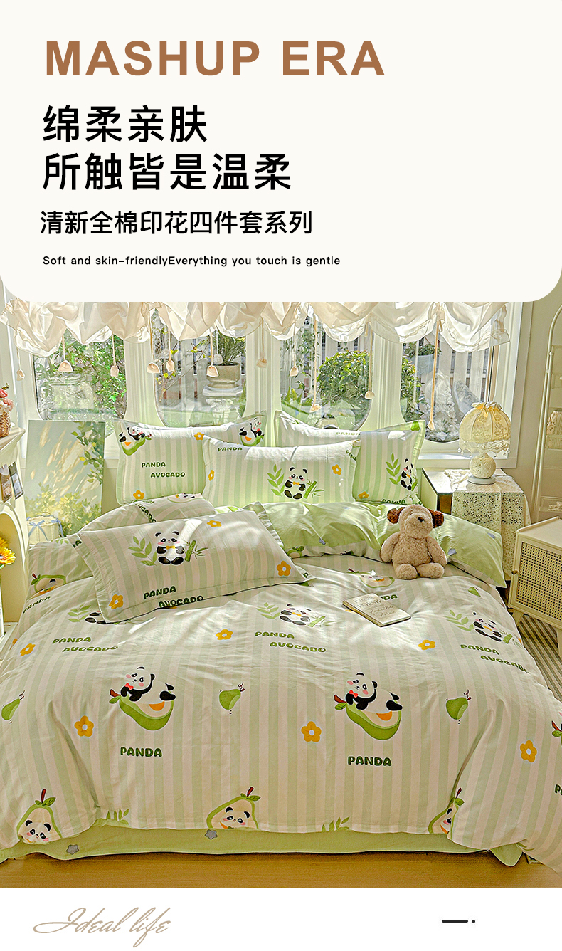 当前位置: 91家纺网 > 商品网购 > 床品套件 > 四件套 > 全棉普通四件套 > 恩泽家纺 2026春夏新款全棉纯棉12868印花四件套(提供买家秀,预留缩水率) 熊猫与牛油果