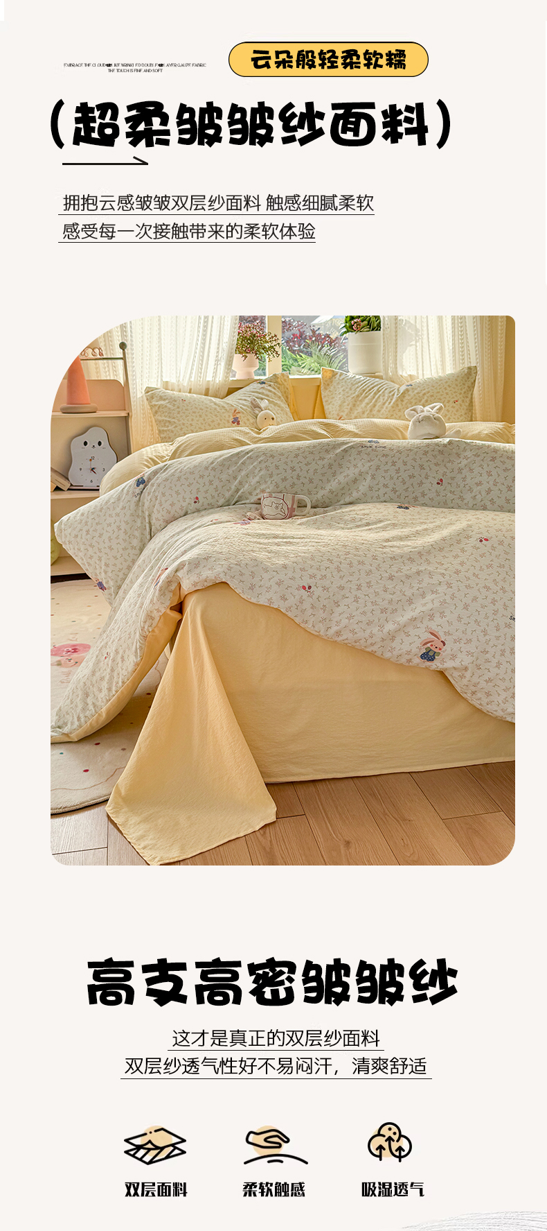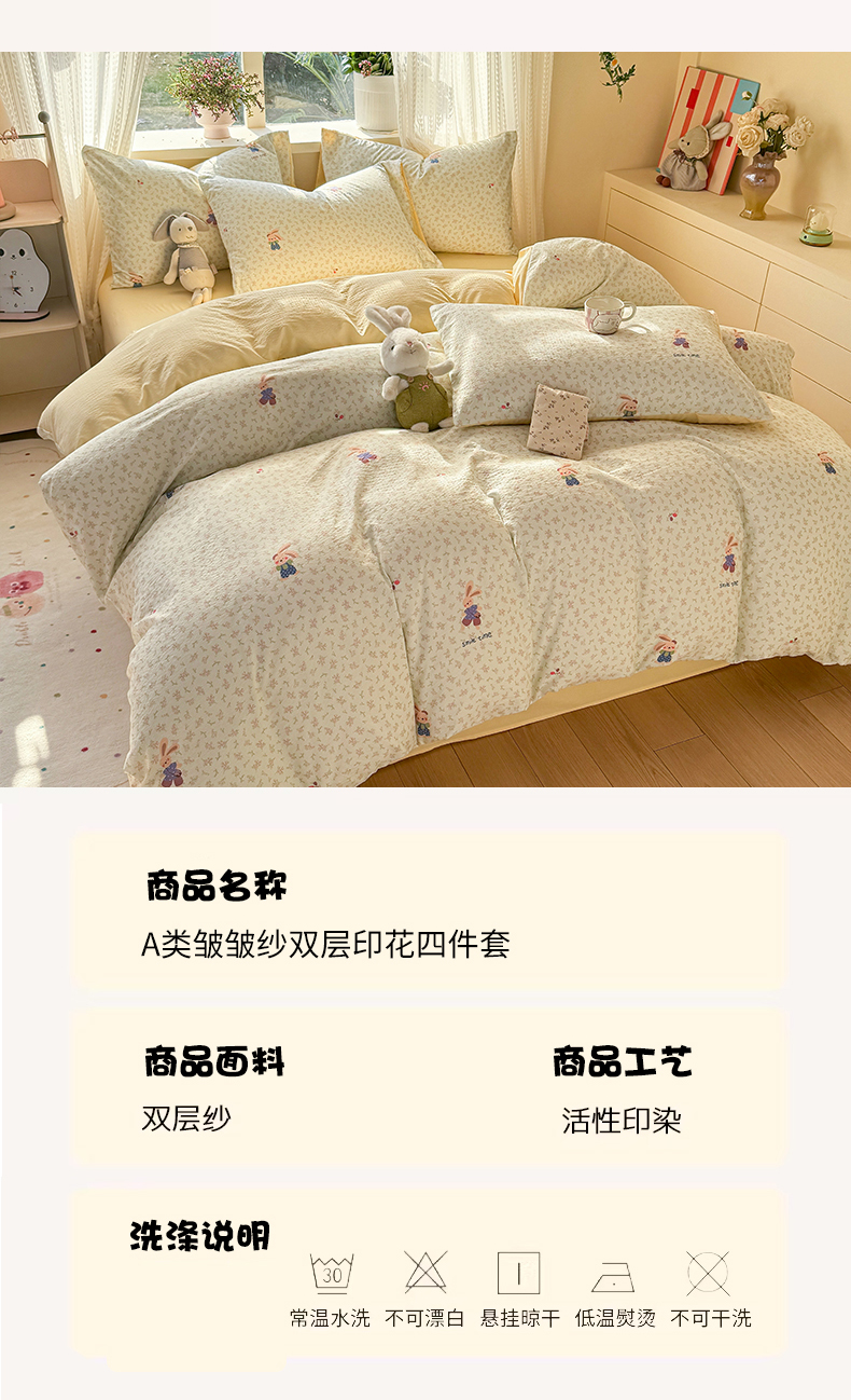 当前位置: 91家纺网 > 商品网购 > 床品套件 > 四件套 > 双层纱四件套 > 丽美人家纺 2026新款A类皱皱纱双层印花四件套 乐园