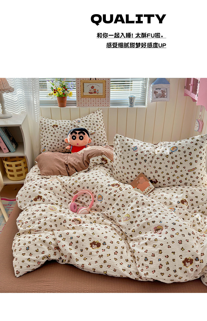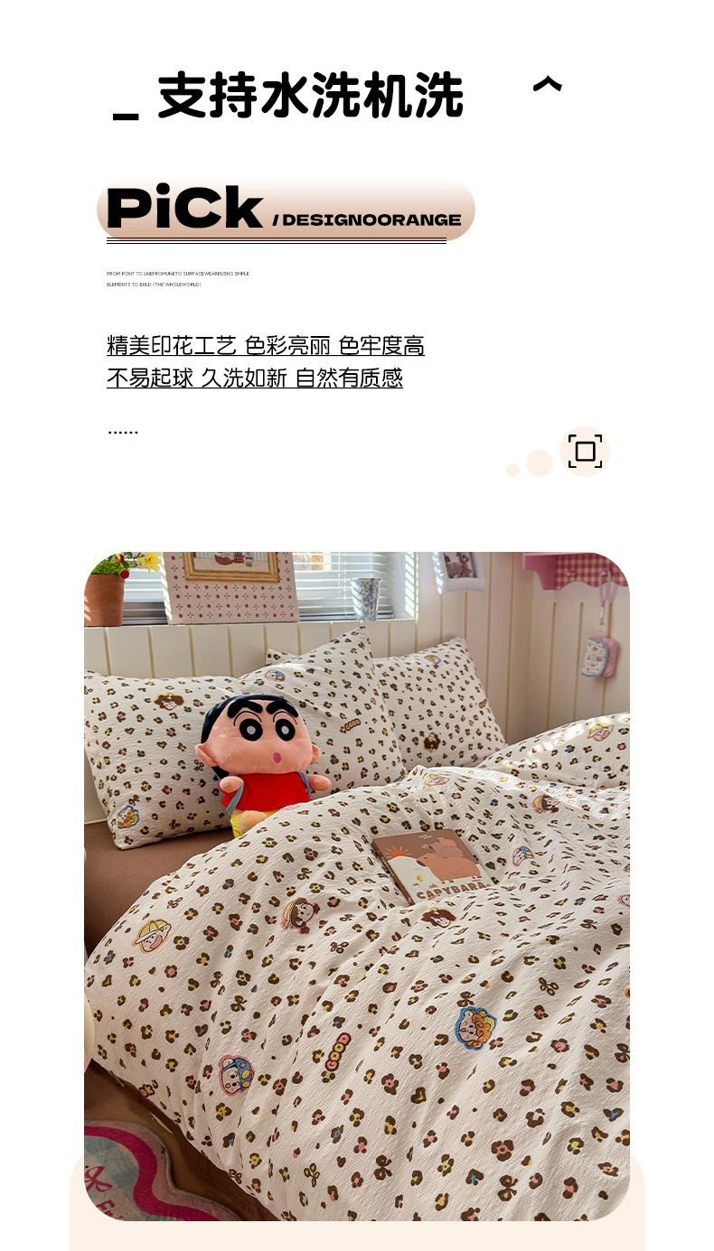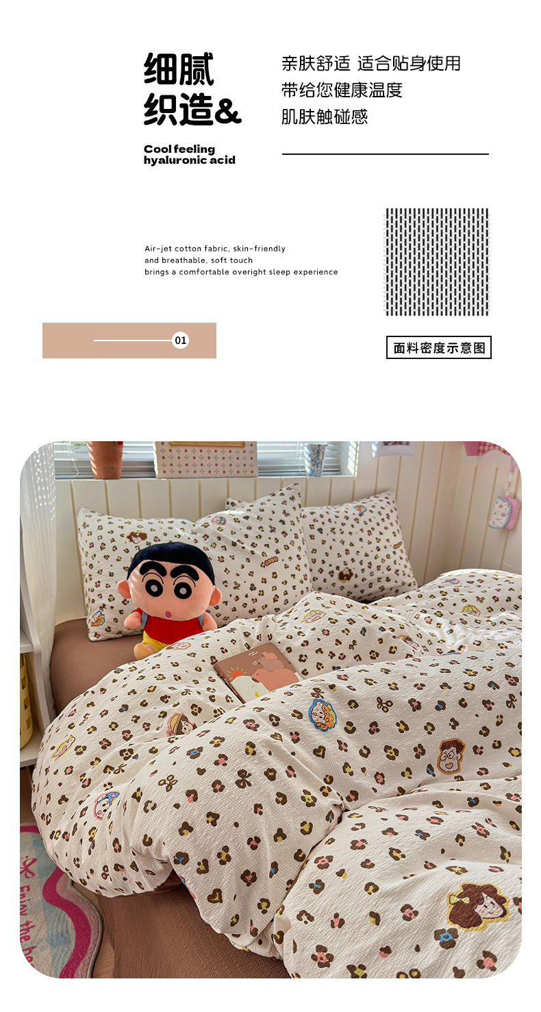 当前位置: 91家纺网 > 商品网购 > 床品套件 > 四件套 > 化纤普通四件套 > 奈颜 2026新款A类泡芙纱印花四件套学生宿舍三件套-卡通印花系列 豹纹蜡笔