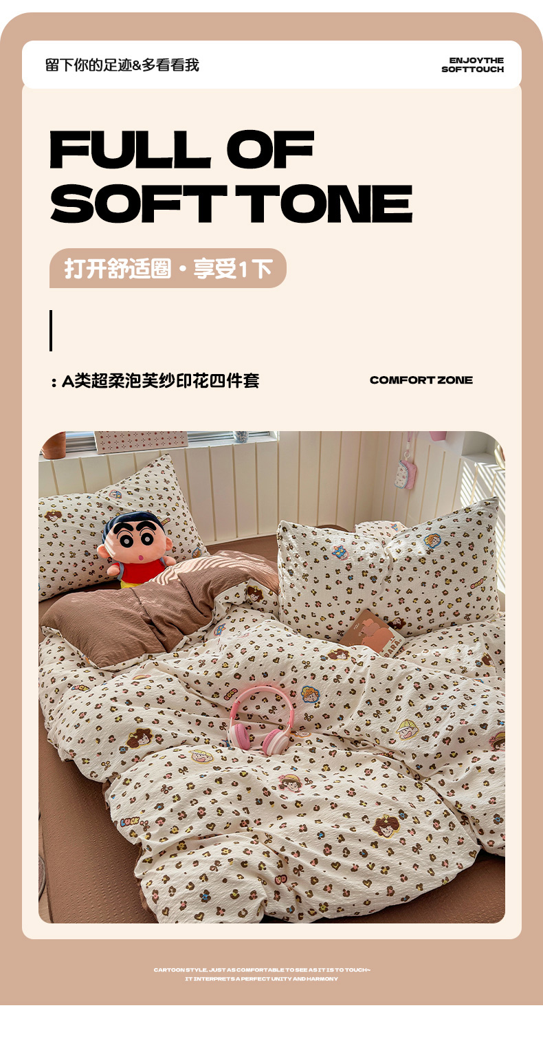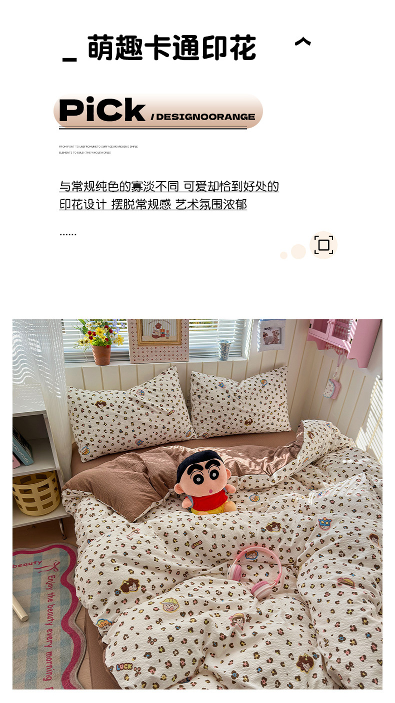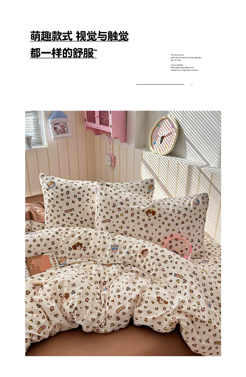 当前位置: 91家纺网 > 商品网购 > 床品套件 > 四件套 > 化纤普通四件套 > 奈颜 2026新款A类泡芙纱印花四件套学生宿舍三件套-卡通印花系列 豹纹蜡笔