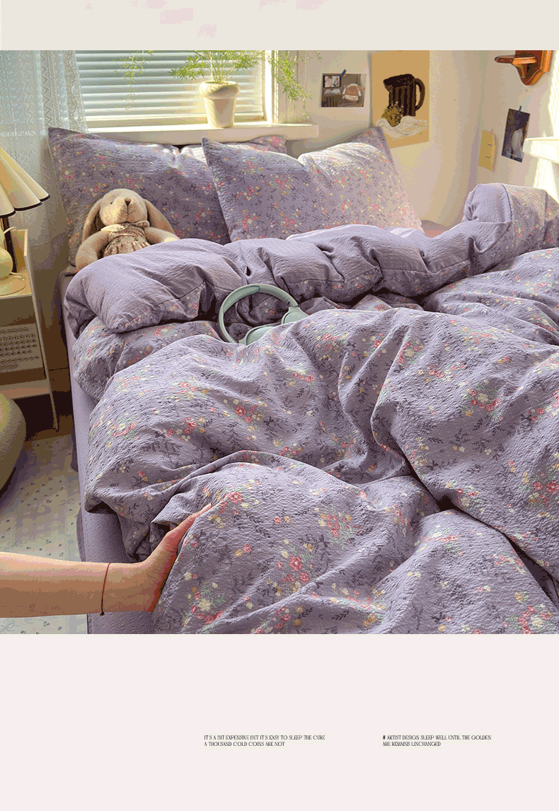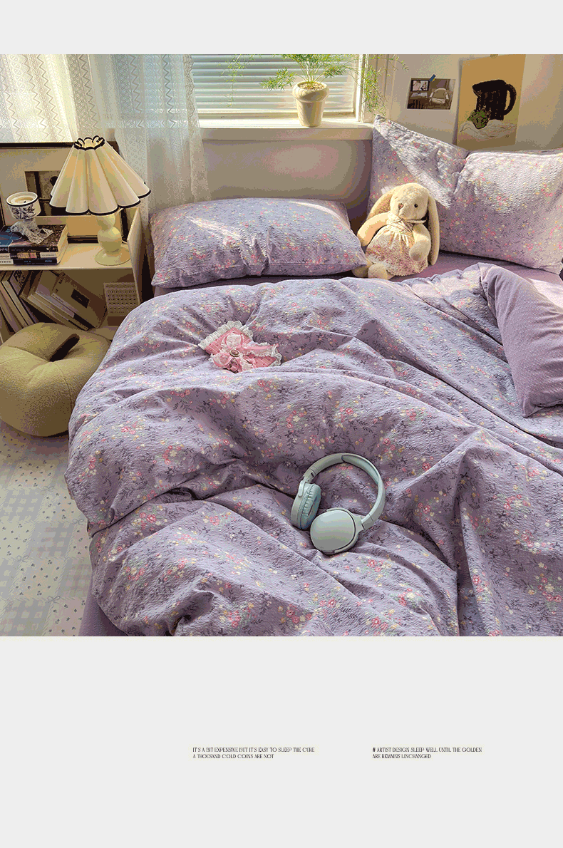 当前位置: 91家纺网 > 商品网购 > 床品套件 > 四件套 > 化纤普通四件套 > 奈颜 2026新款A类泡芙纱小碎花四件套学生宿舍三件套 松间茶事