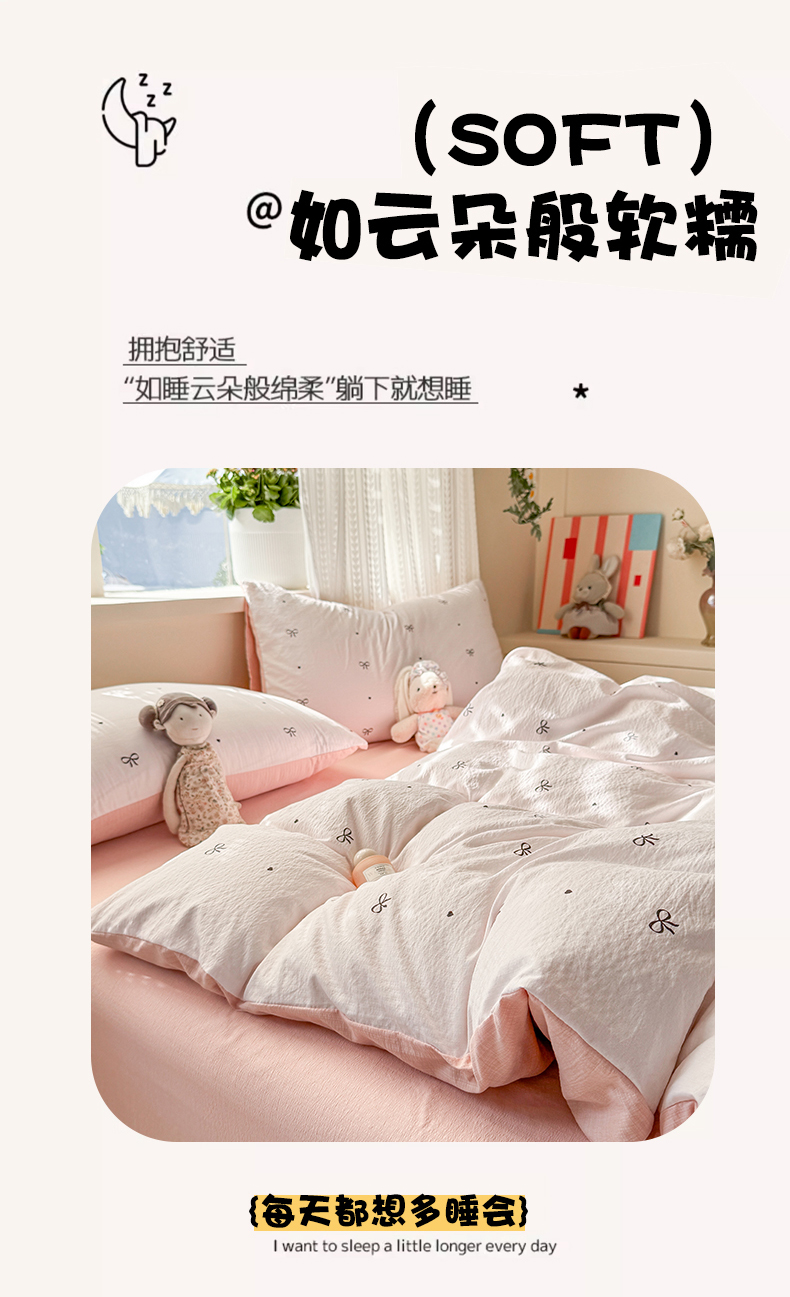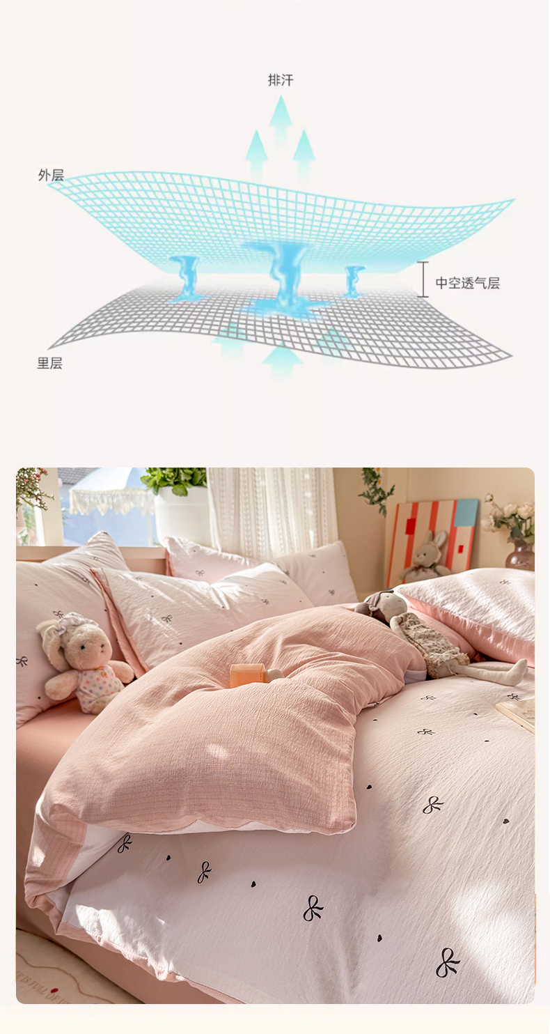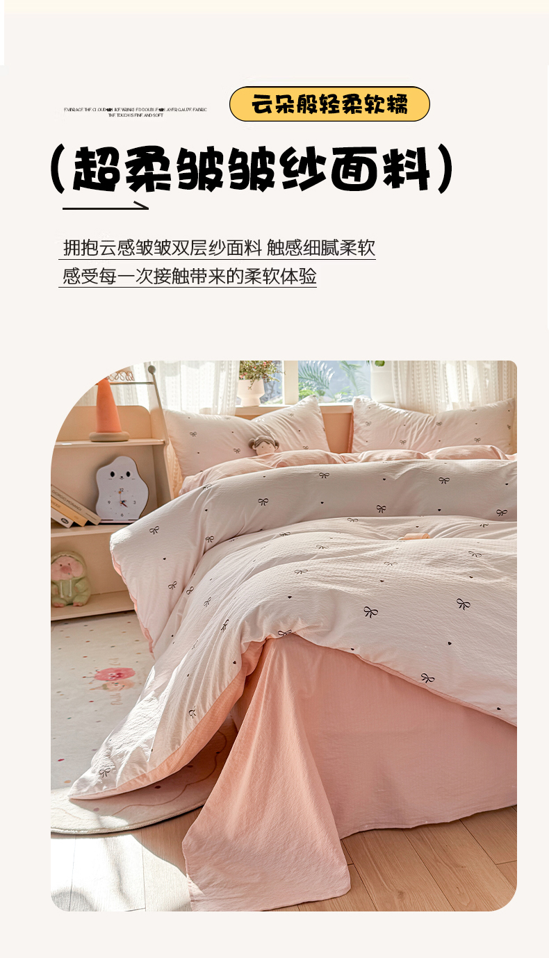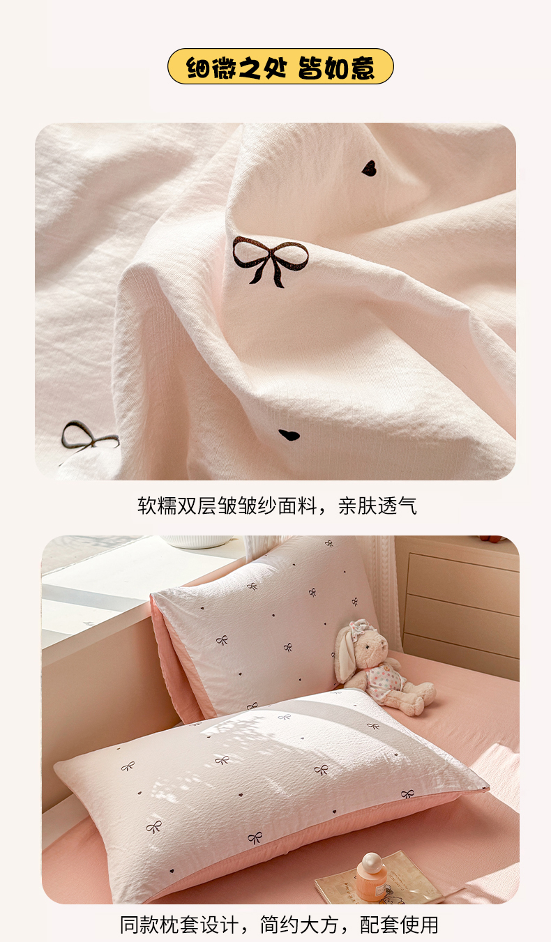 丽美人家纺 2026新款A类皱皱纱双层印花单被套 BT粉色蝴蝶结