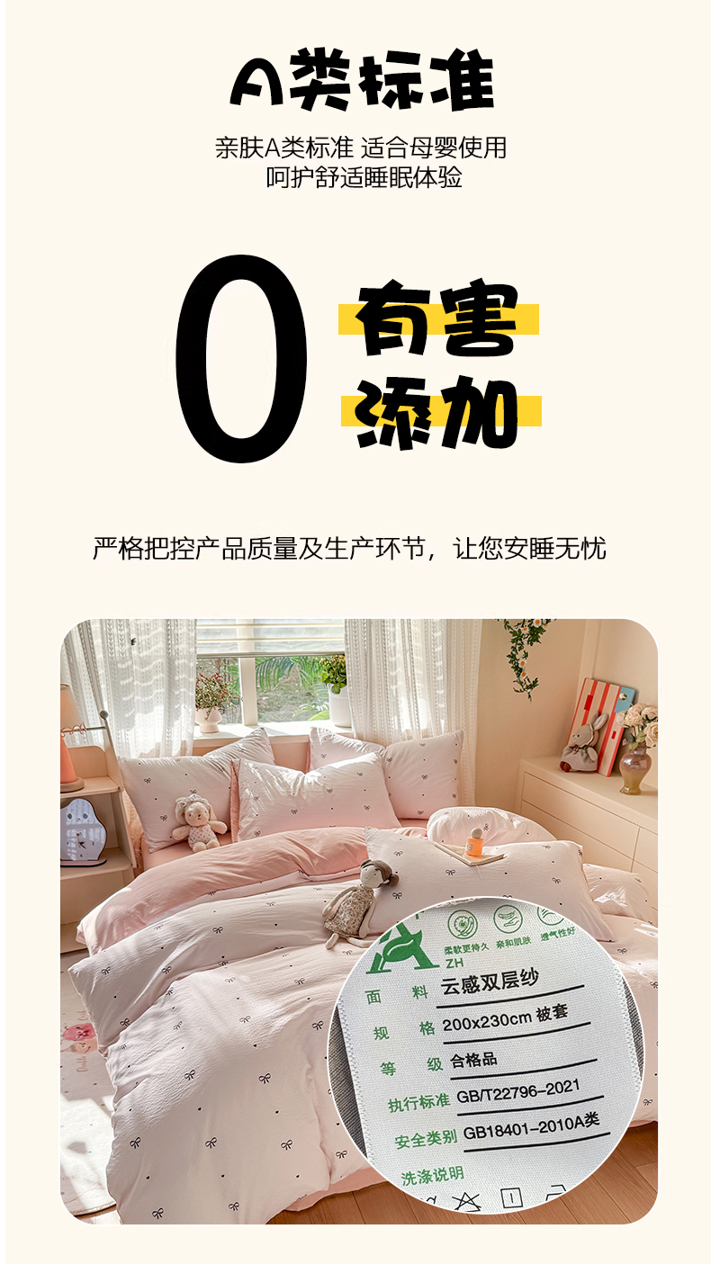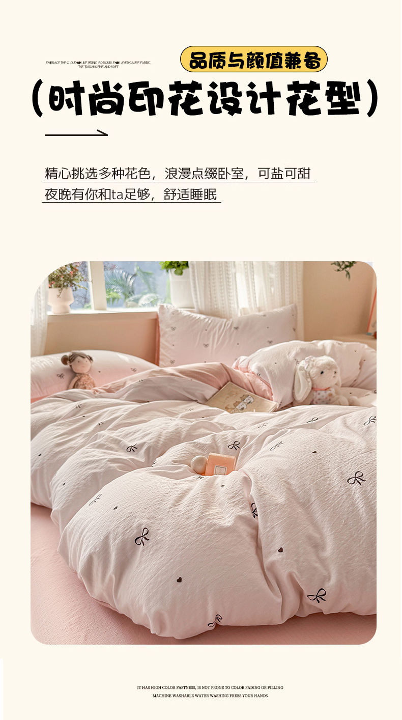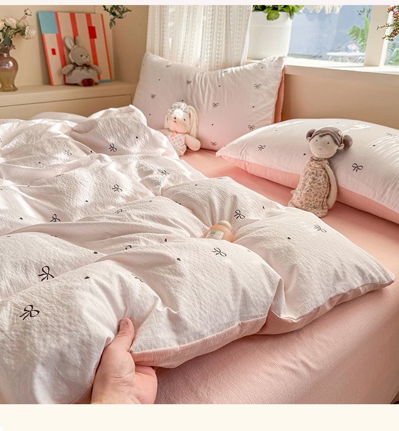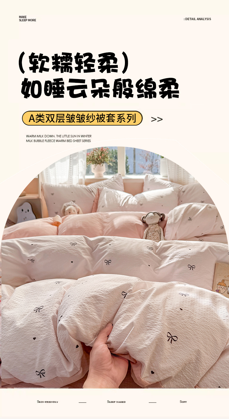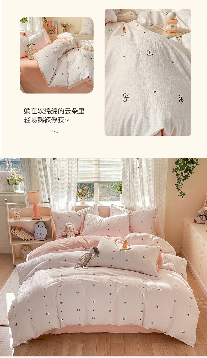 丽美人家纺 2026新款A类皱皱纱双层印花单被套 BT粉色蝴蝶结