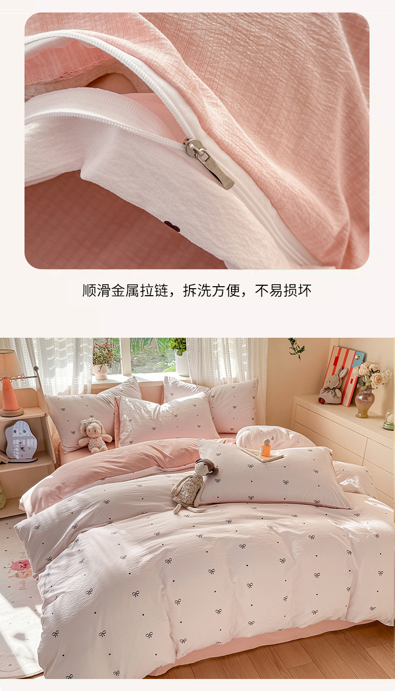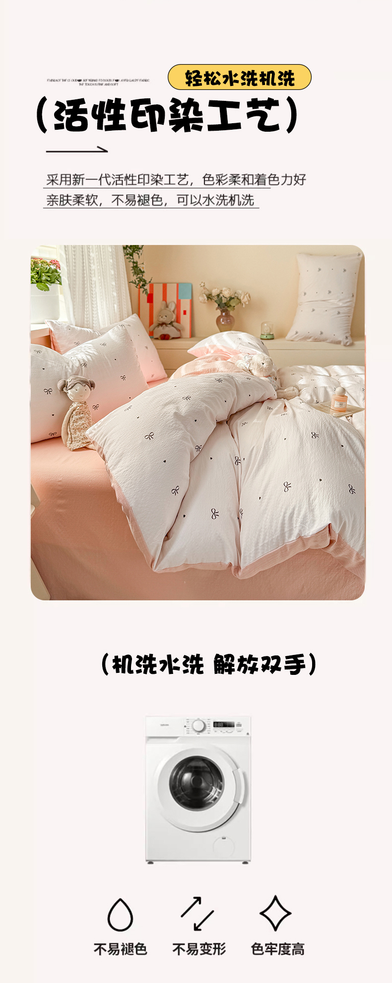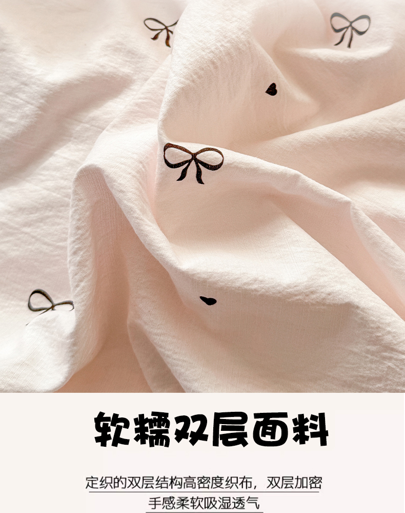 商品名称:丽美人家纺 2026新款A类皱皱纱双层印花单被套 BT粉色蝴蝶结