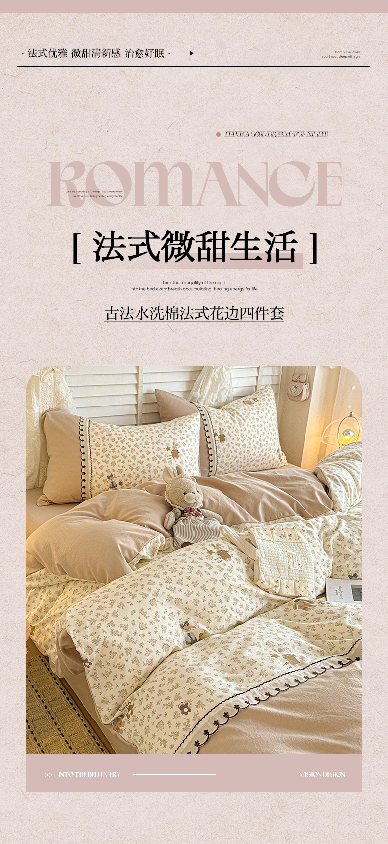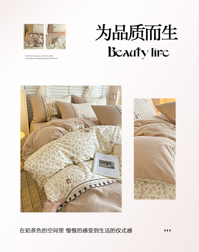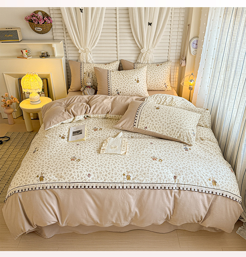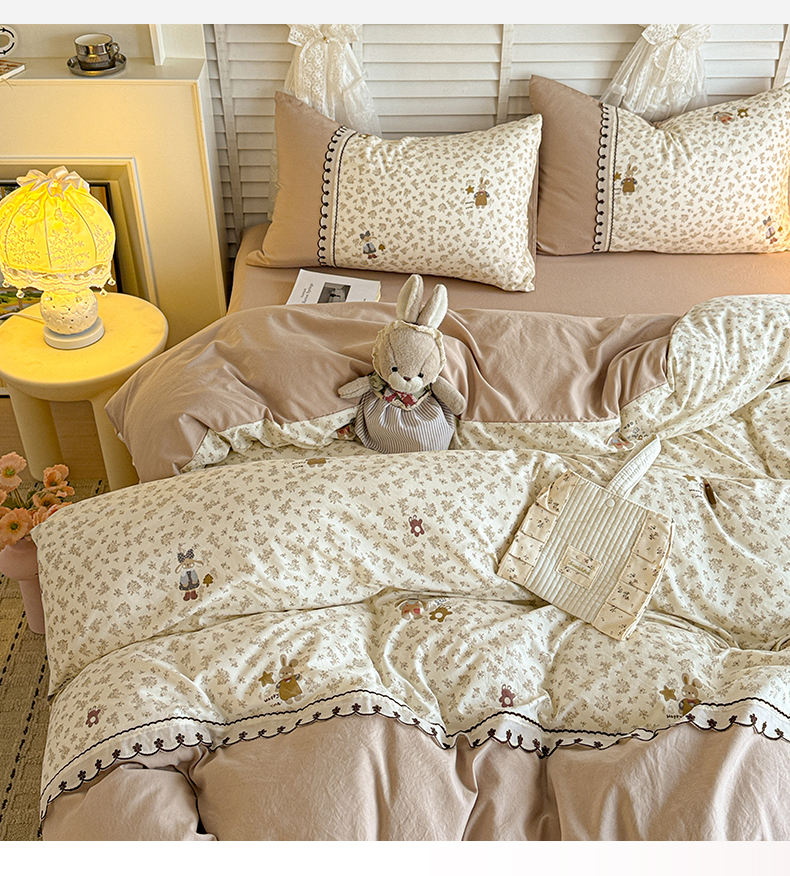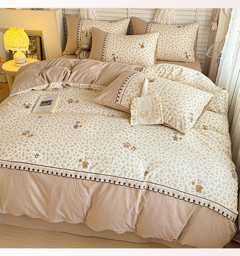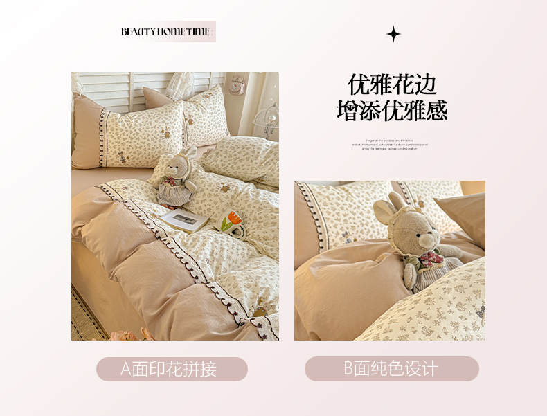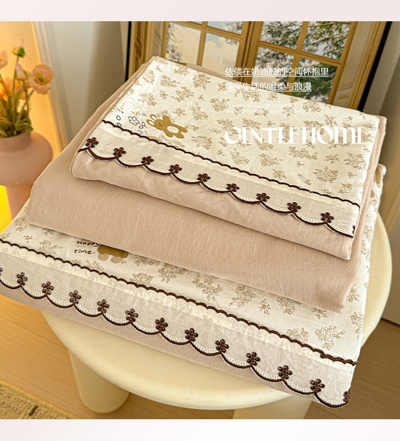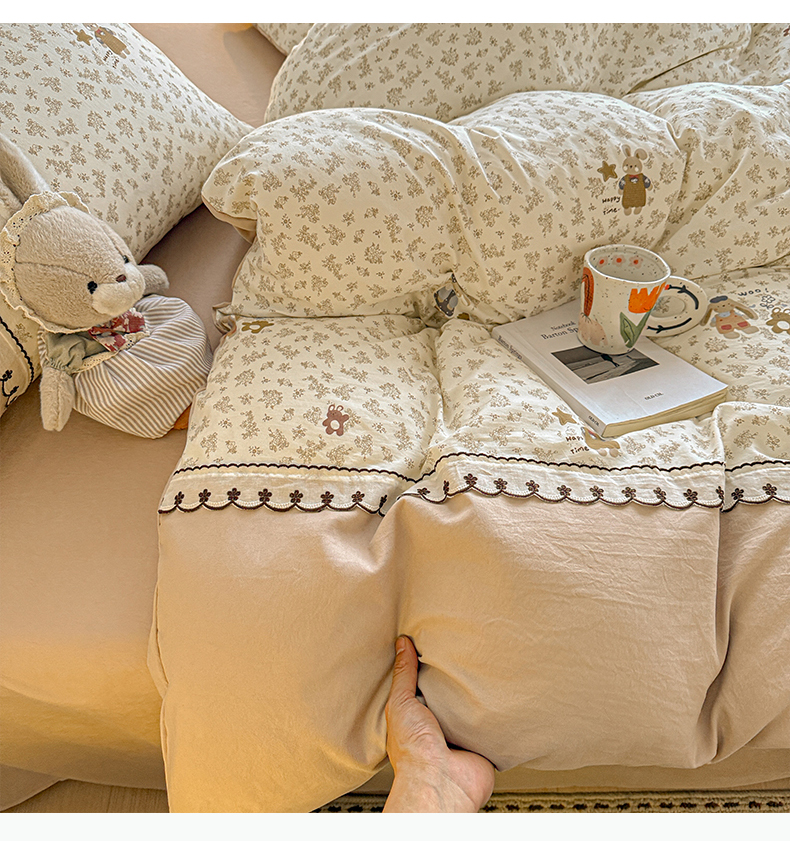 当前位置: 91家纺网 > 商品网购 > 床品套件 > 四件套 > 其它四件套 > 鑫利来家纺 2026新款古法水洗棉法式花边四件套甄选纯棉花边拼接款四件套印花被套床单单品四件 午后时光