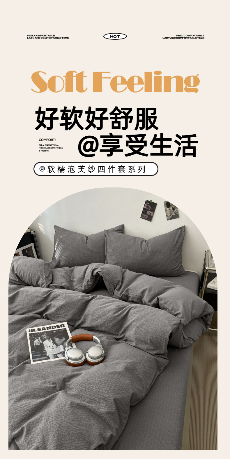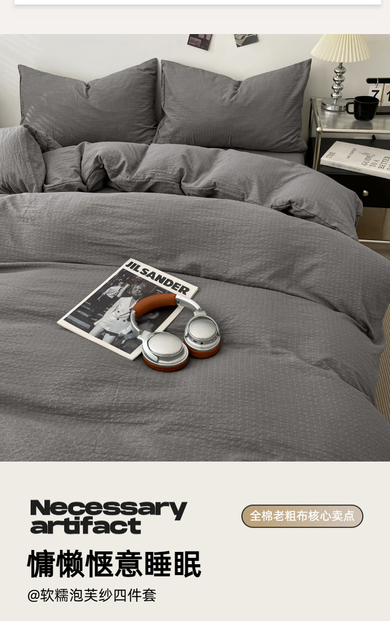 当前位置: 91家纺网 > 商品网购 > 床品套件 > 四件套 > 其它四件套 > 彩韵家纺 2026新款软糯泡芙纱纯色四件套 泡芙-冷川烟灰