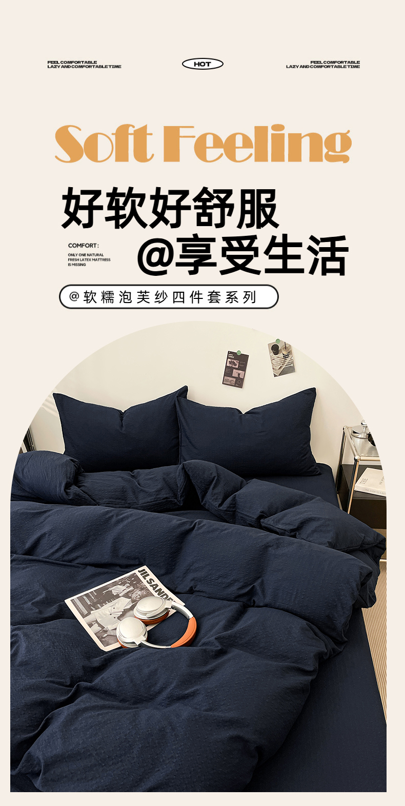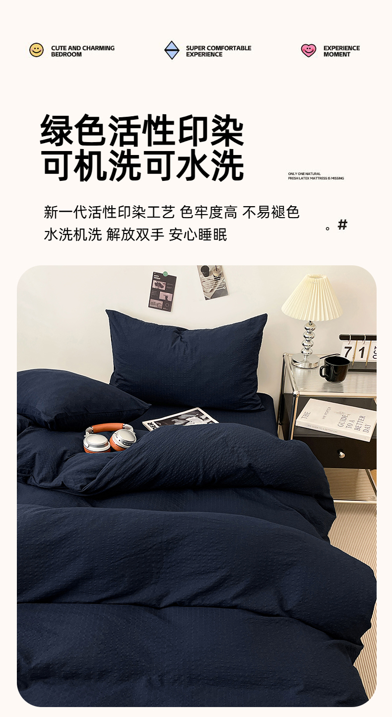 当前位置: 91家纺网 > 商品网购 > 床品套件 > 四件套 > 其它四件套 > 卡迪熊家纺 2026新款软糯泡芙纱纯色四件套 泡芙-深海墨蓝