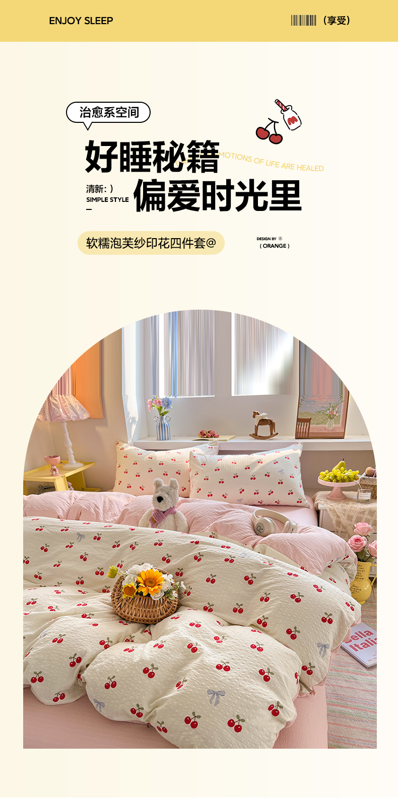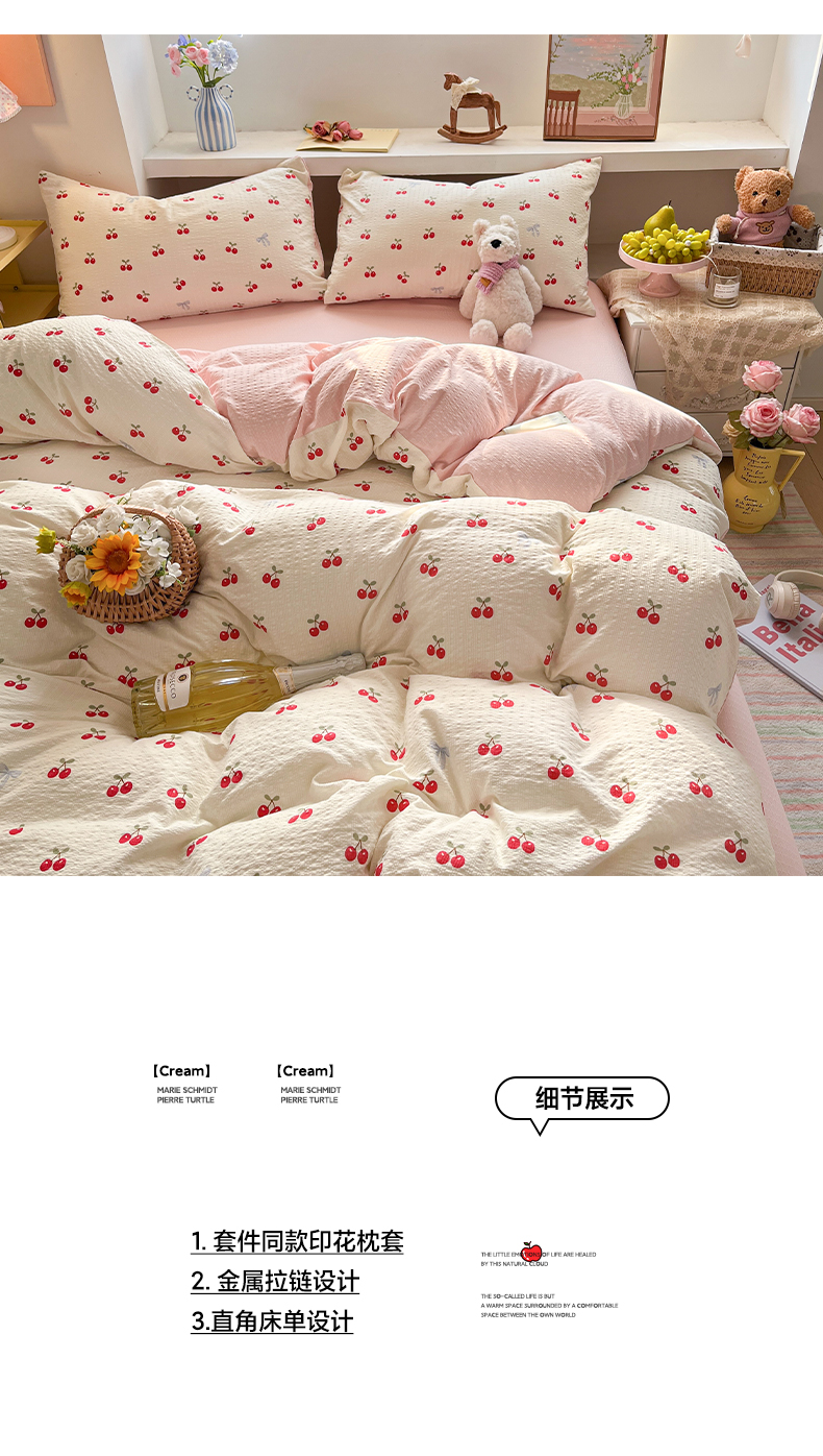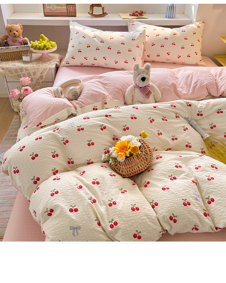 当前位置: 91家纺网 > 商品网购 > 床品套件 > 四件套 > 其它四件套 > 卡迪熊家纺 2026新款软糯泡芙纱印花四件套 樱桃盛宴