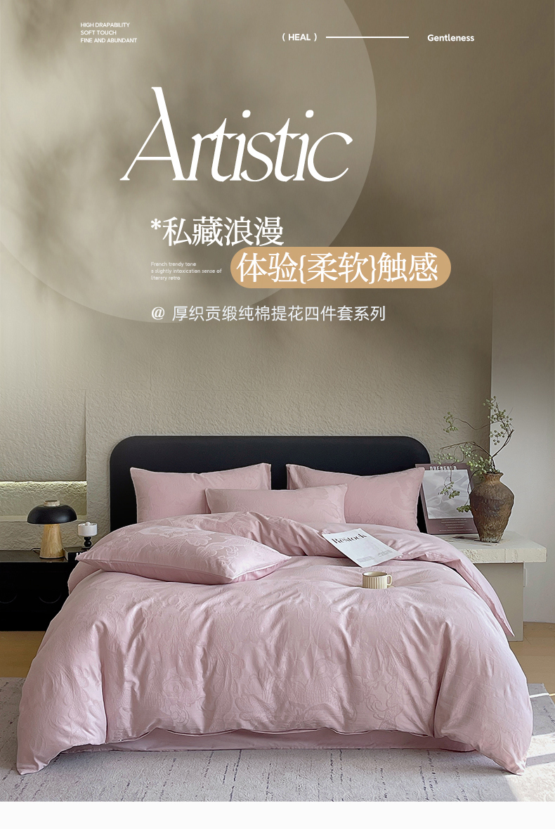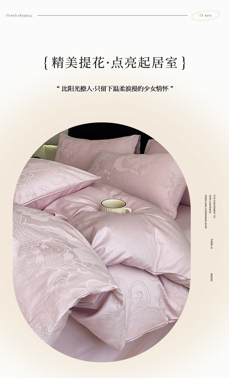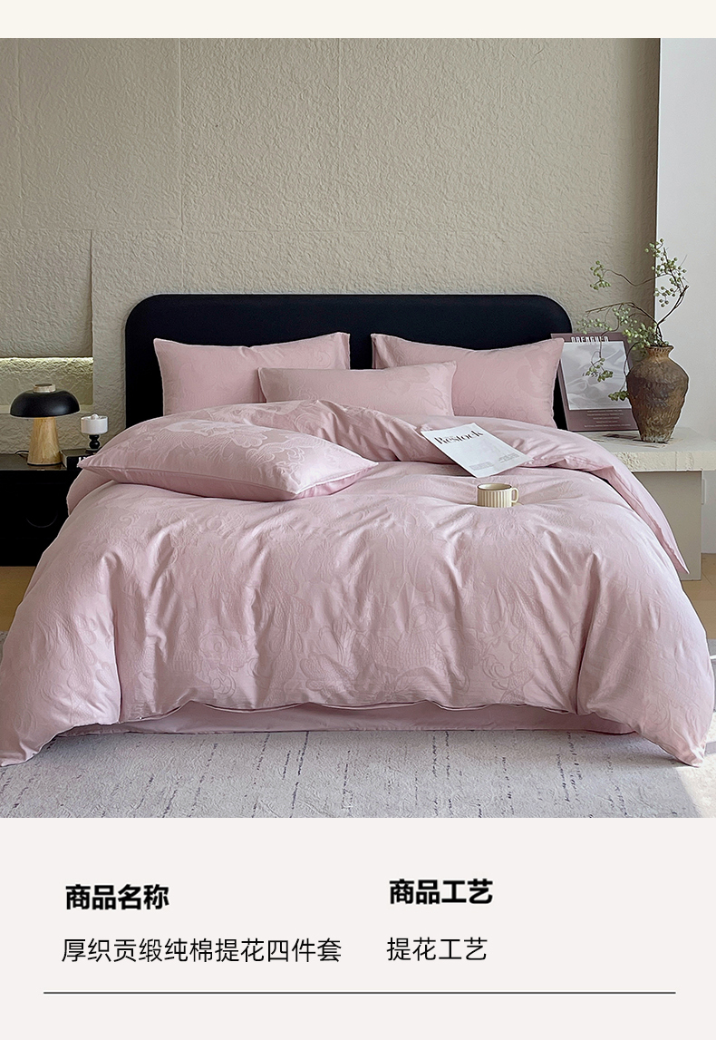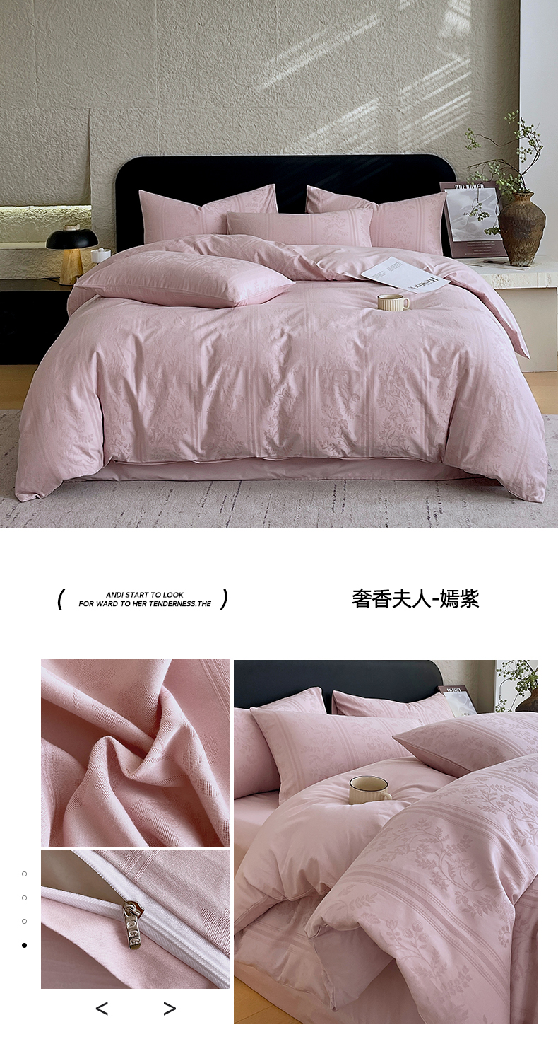 当前位置: 91家纺网 > 商品网购 > 床品套件 > 四件套 > 全棉普通四件套 > 琪格格纺织 2026新款60s精梳全棉纯棉厚织贡缎提花四件套 A类全棉立体浮雕床品 虞美人-嫣紫