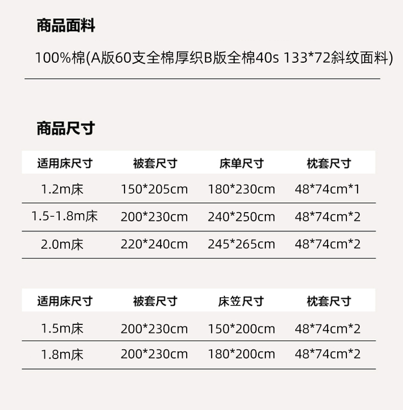 【床单款】1.8四件套-被套200x230 | ¥140.00 |