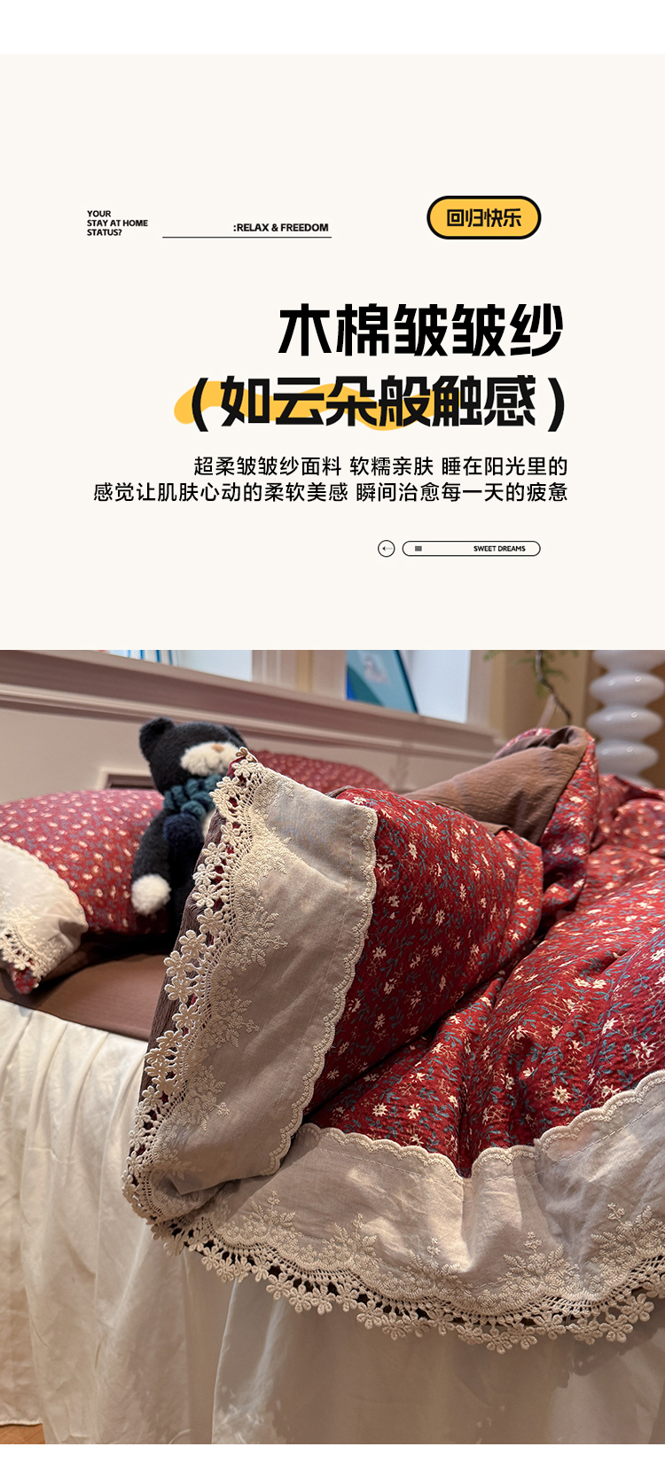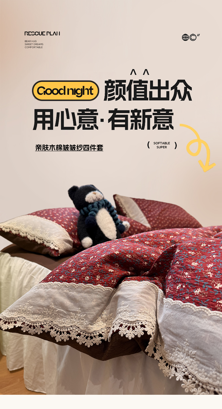 当前位置: 91家纺网 > 商品网购 > 床品套件 > 四件套 > 其它四件套 > 盼季家纺 2026新款亲肤木棉法式复古蕾丝花边皱皱纱四件套 复古蕾丝花边-玫瑰花园