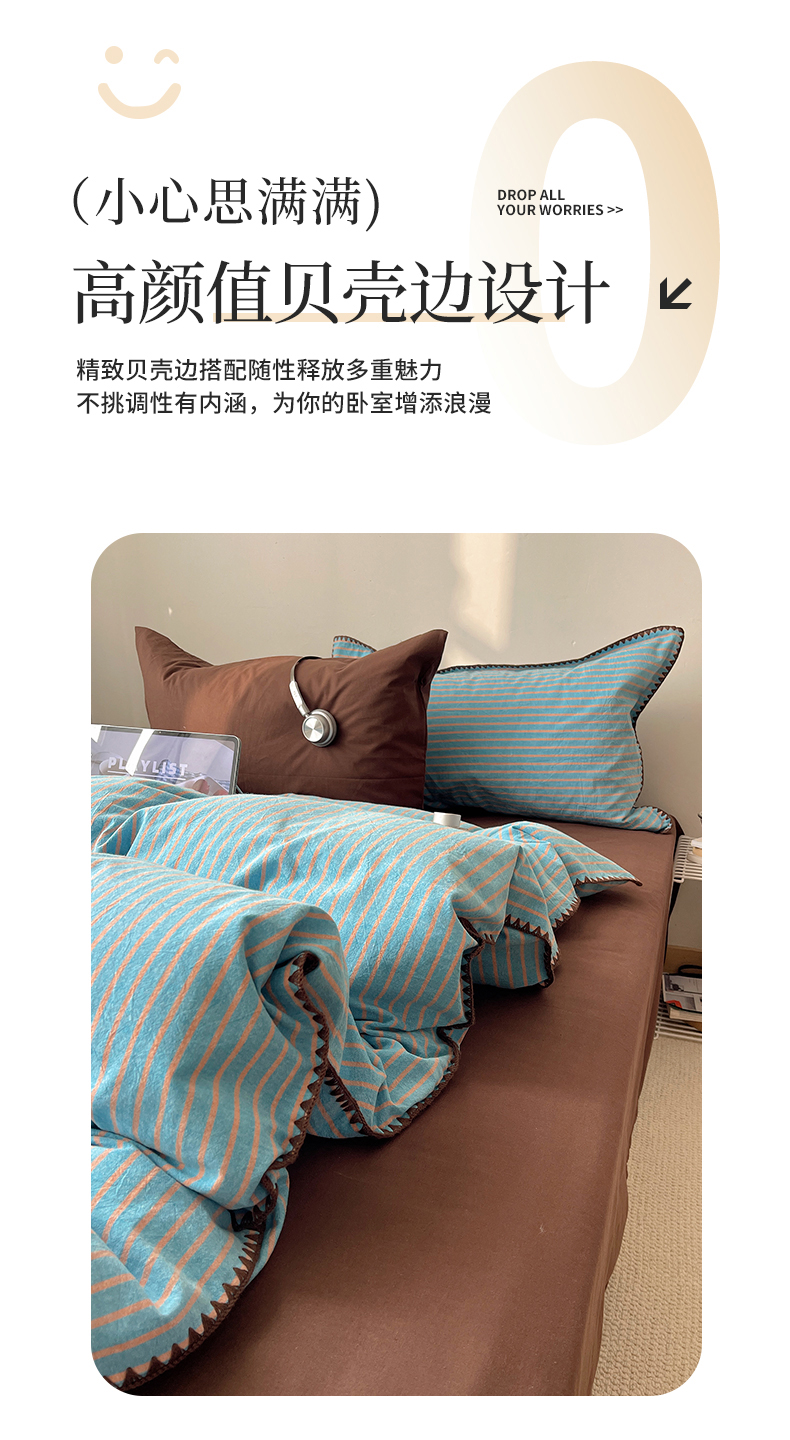 (总)瑞莱 2026年新款全棉纯棉水洗棉贝壳边四件套