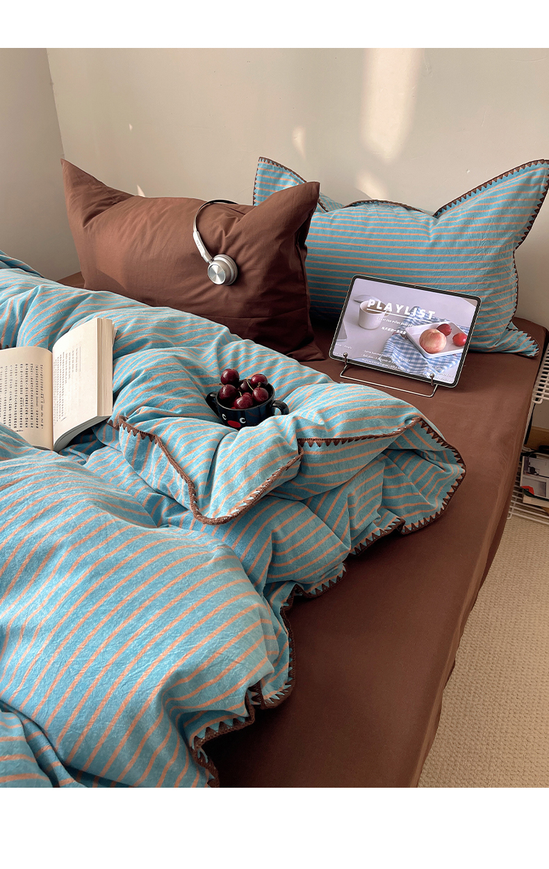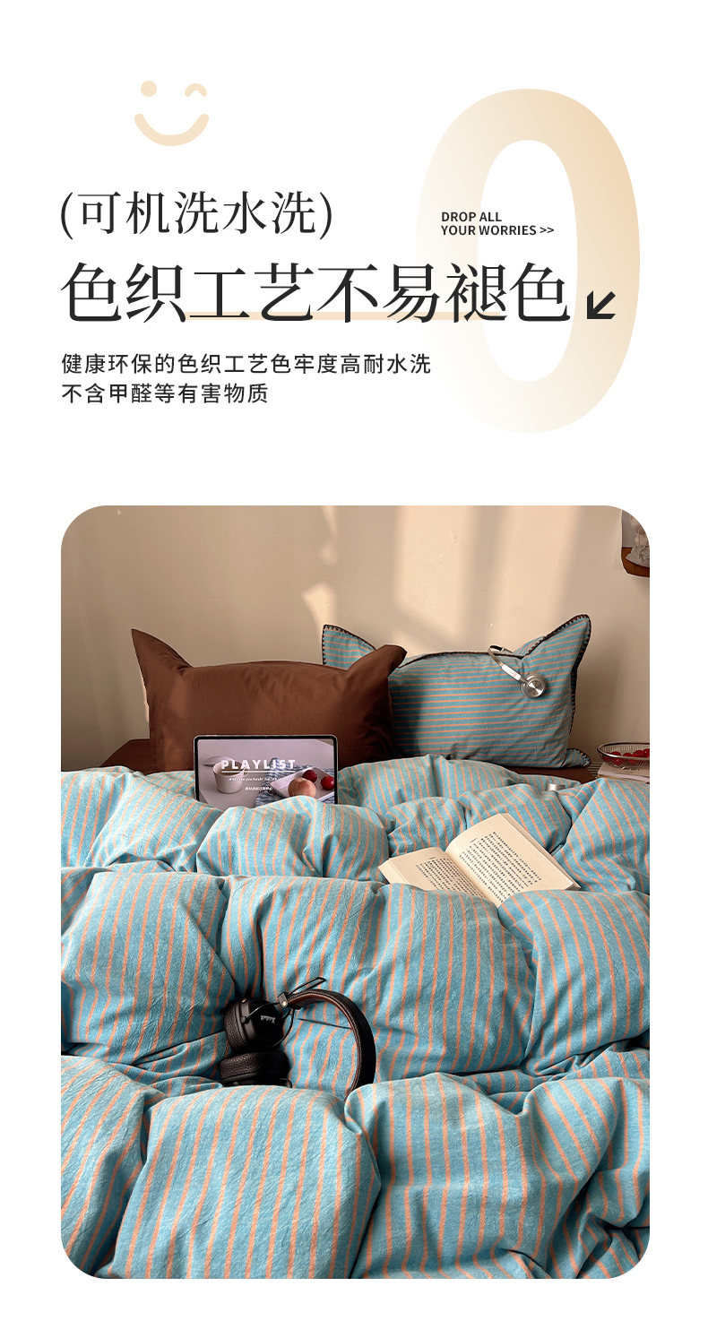 (总)瑞莱 2025新款色织水洗棉贝壳绣系列四件套-第二版,条纹灰,细条红,细条蓝,细条绿