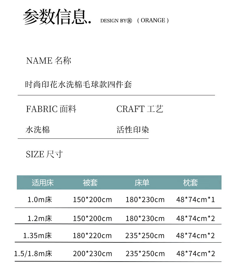 【床笠款】1.5四件套-被套180x220 | ¥64.00 |