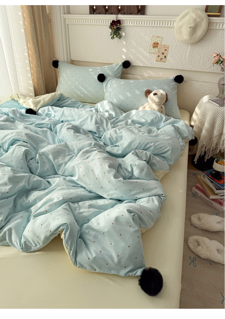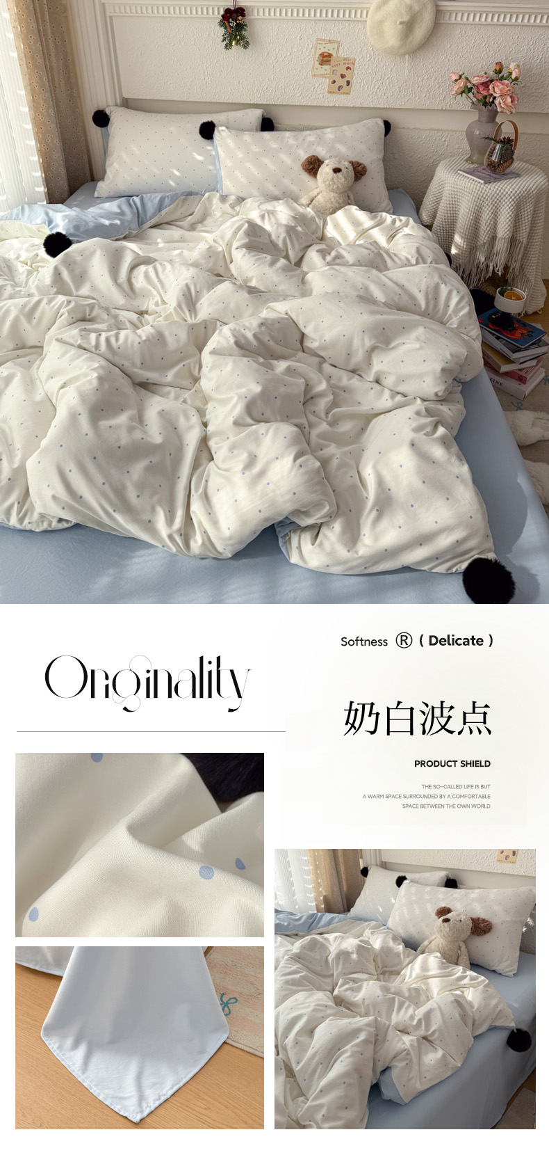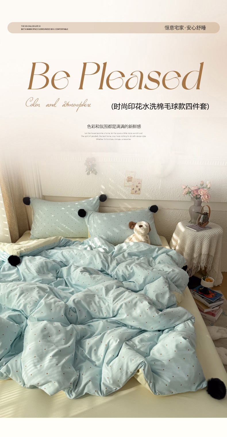 当前位置: 91家纺网 > 商品网购 > 床品套件 > 四件套 > 水洗棉四件套 > 雨帆家纺 2026春夏新款时尚印花水洗棉波点毛球四件套 奶白波点