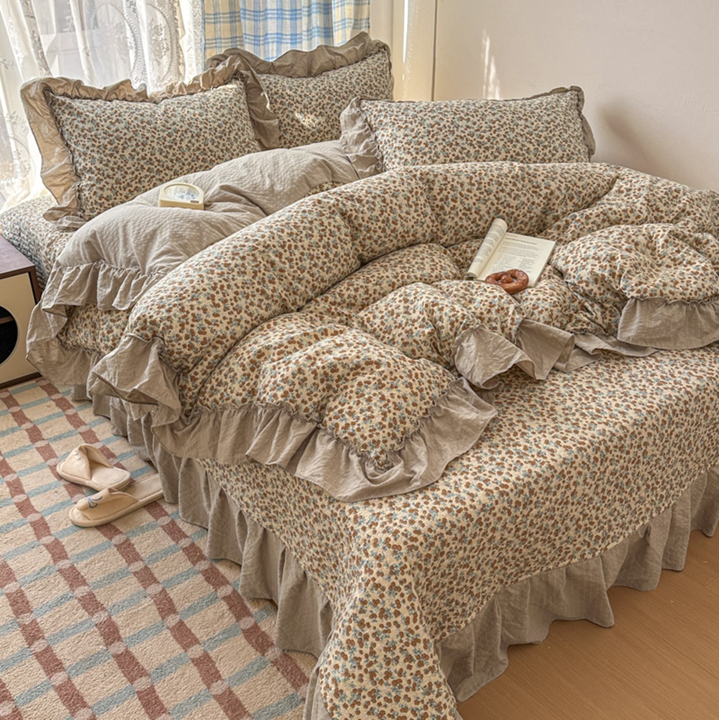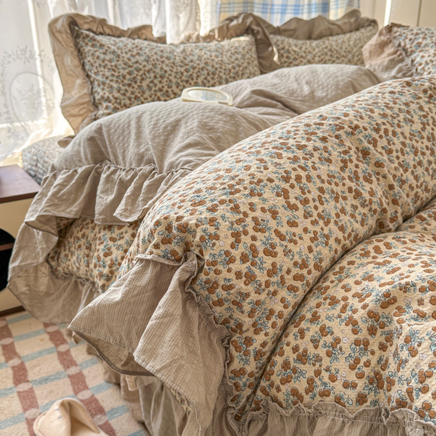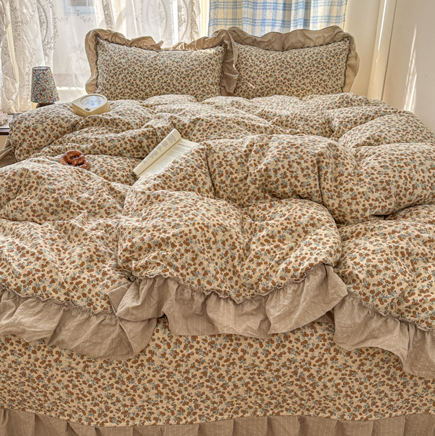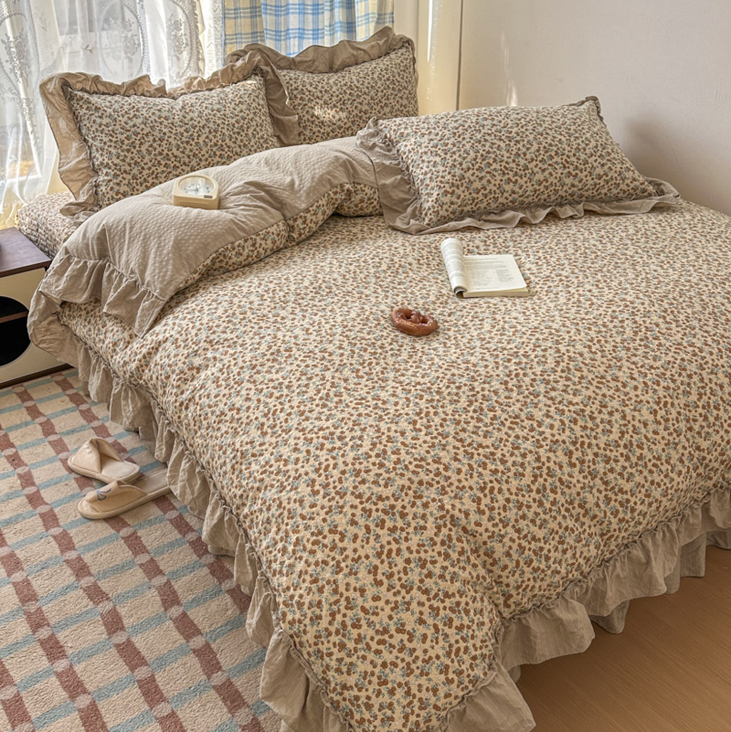 (总)欧尚 2026新款花边床盖四件套,春和,花束,花野,灰樱桃,咖爱心,咖豹纹,咖啡小猫,梨花落,绿爱心,梦境,木马,奶油波点,暖橘枝,暖心,人间草木,田园兔,小女孩,星愿,摇摇马,紫爱心,紫豹纹,紫苏