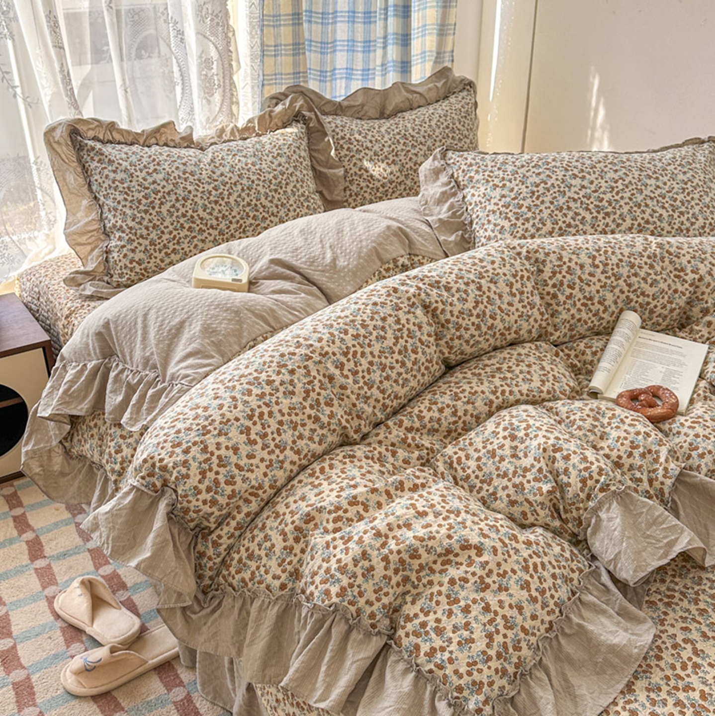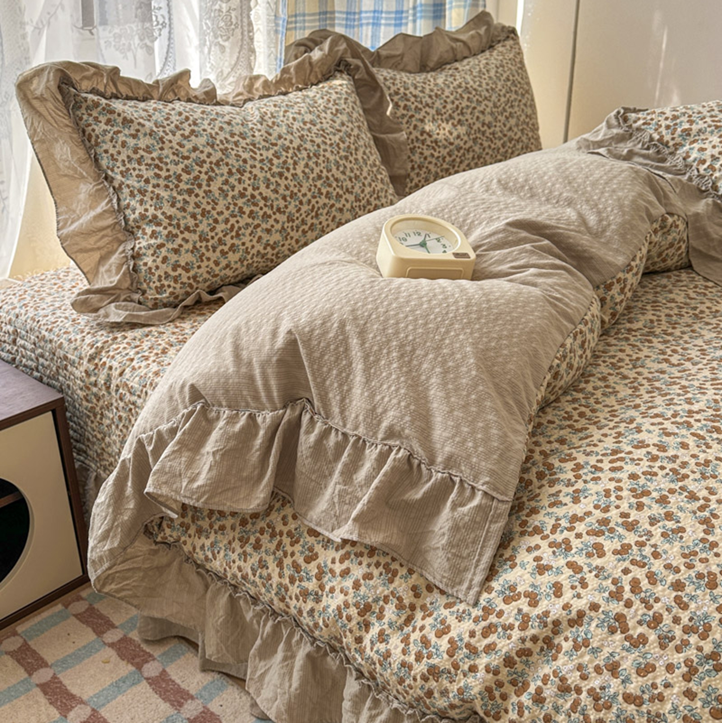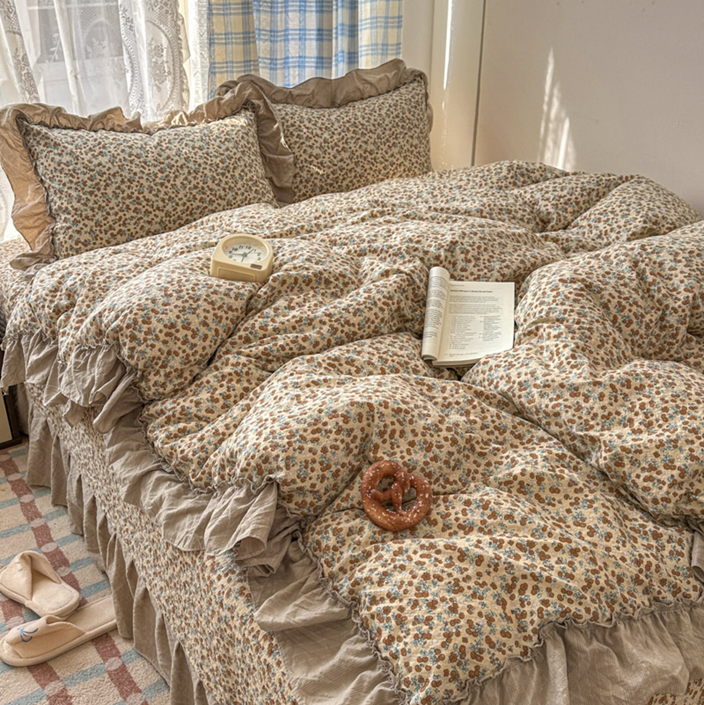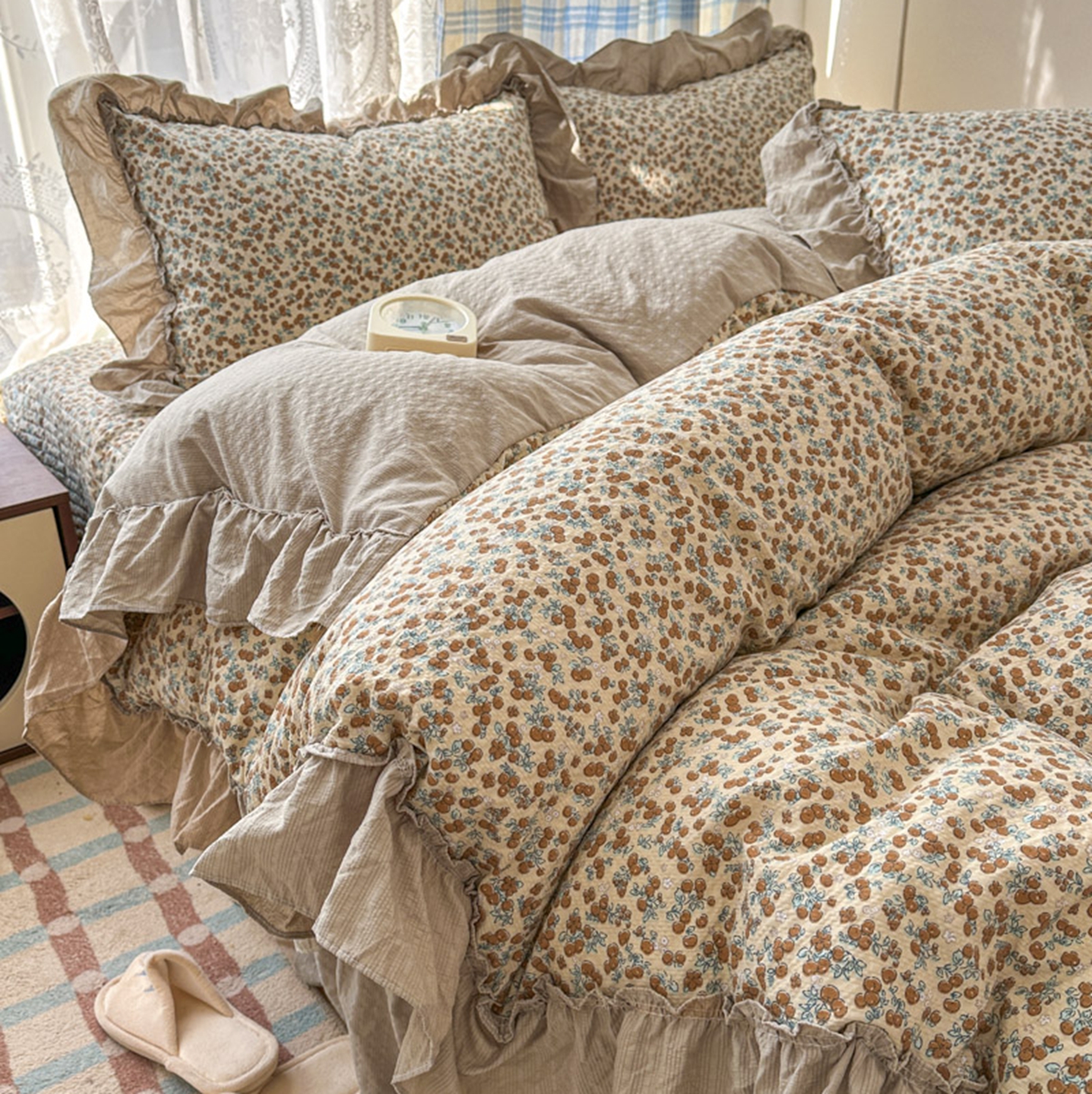 (总)欧尚 2026新款花边床盖四件套,春和,花束,花野,灰樱桃,咖爱心,咖豹纹,咖啡小猫,梨花落,绿爱心,梦境,木马,奶油波点,暖橘枝,暖心,人间草木,田园兔,小女孩,星愿,摇摇马,紫爱心,紫豹纹,紫苏