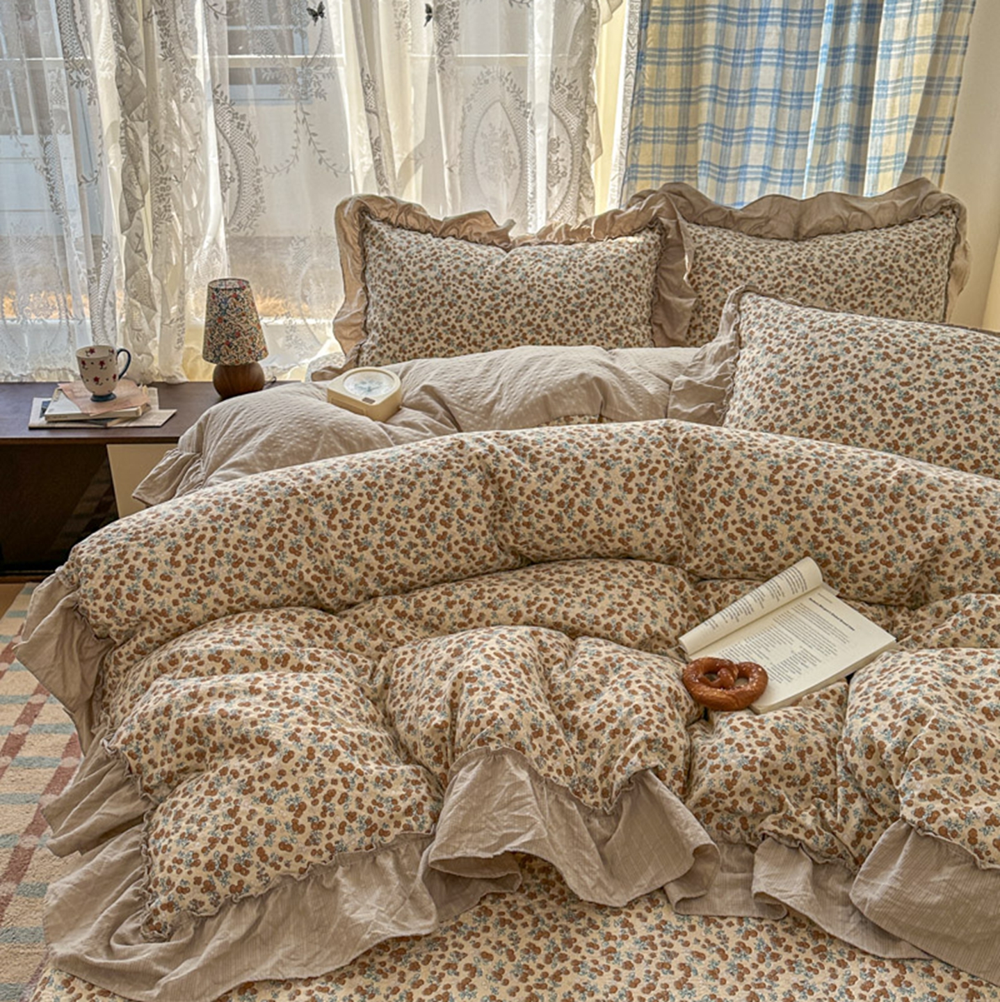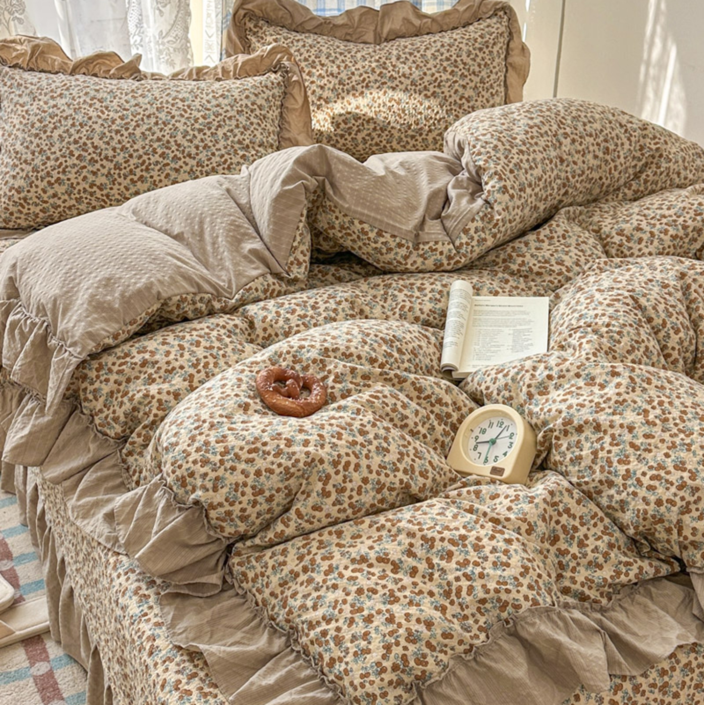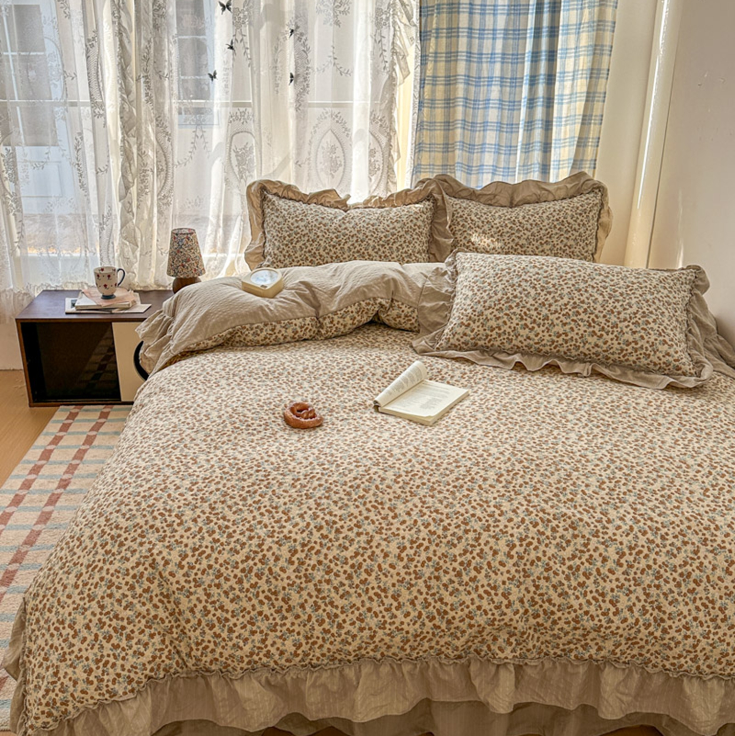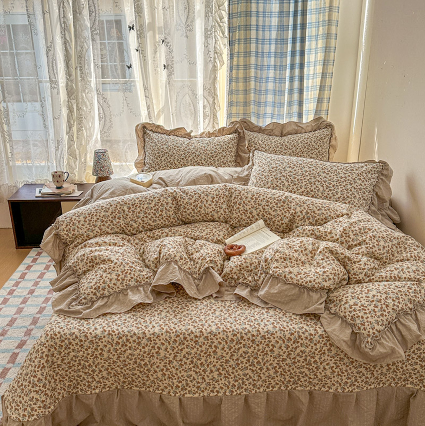 (总)欧尚 2026新款花边床盖四件套,春和,花束,花野,灰樱桃,咖爱心,咖豹纹,咖啡小猫,梨花落,绿爱心,梦境,木马,奶油波点,暖橘枝,暖心,人间草木,田园兔,小女孩,星愿,摇摇马,紫爱心,紫豹纹,紫苏