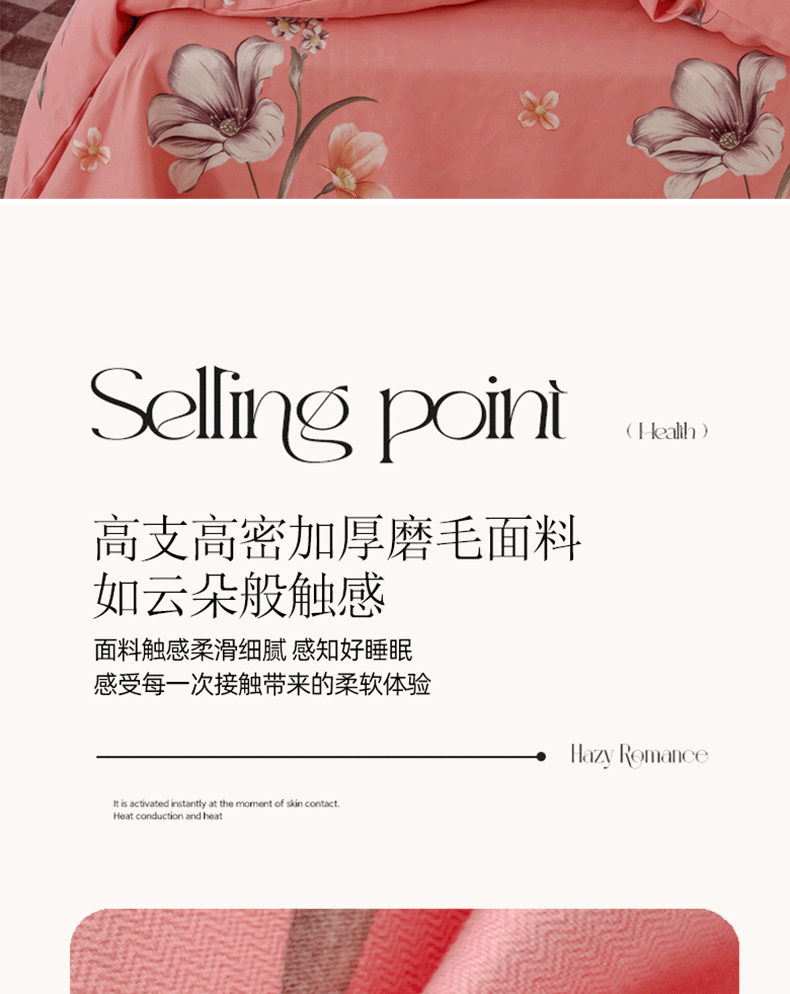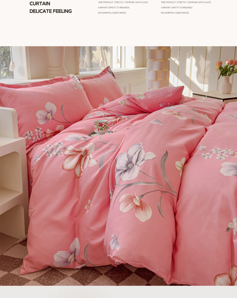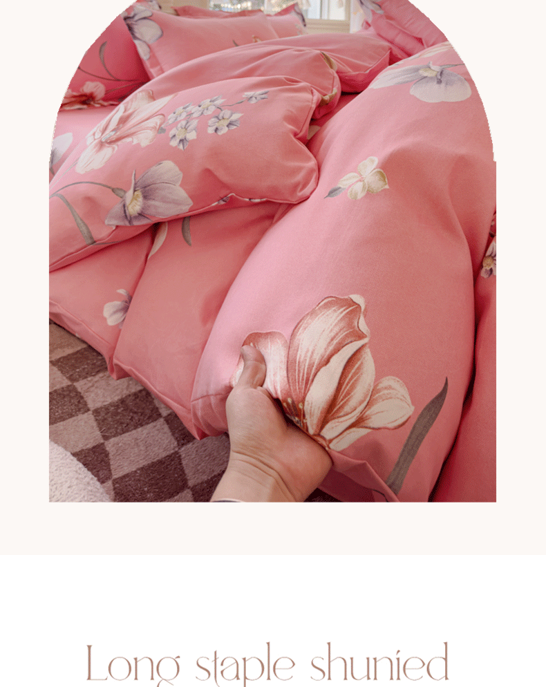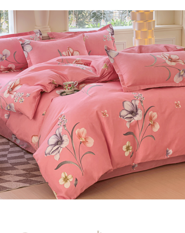 商品名称:佑佳2024新款140克磨毛印花植物羊绒四件套直播 那时花开-粉