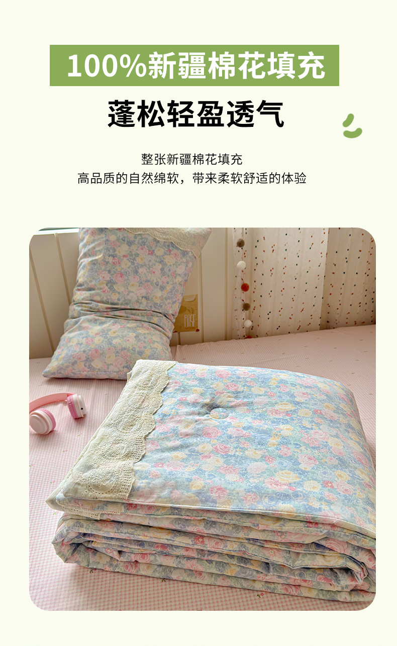商品名称:暖阳 2026新款全棉花边款棉花夏被夏凉被空调被 花边烂漫