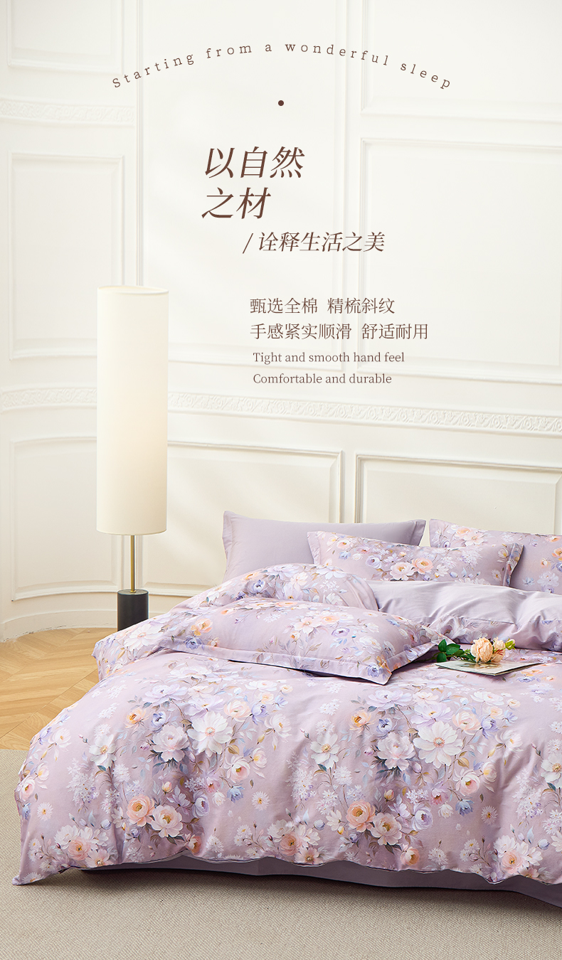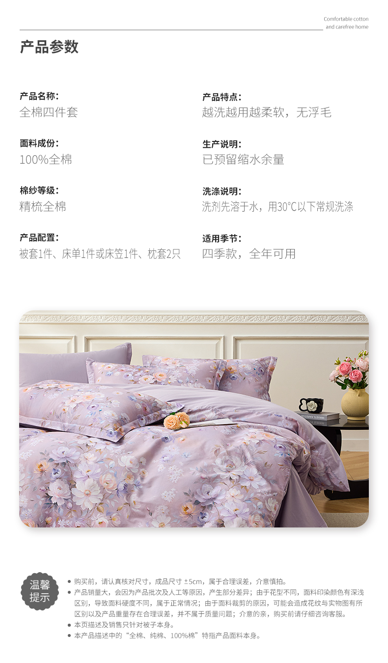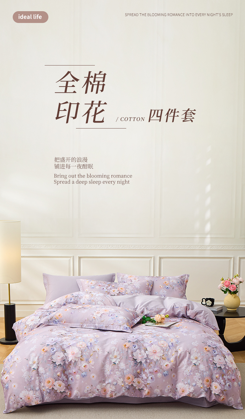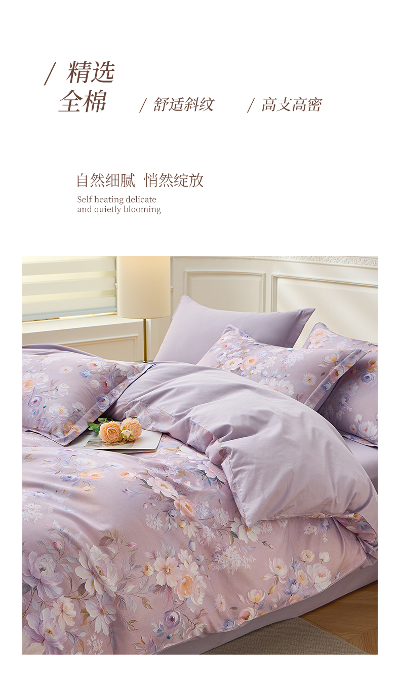 当前位置: 91家纺网 > 商品网购 > 床品套件 > 四件套 > 全棉普通四件套 > 元元家居(元元被业) 2026新款全棉13372套件及单品【印花款】-四件套 花漾紫