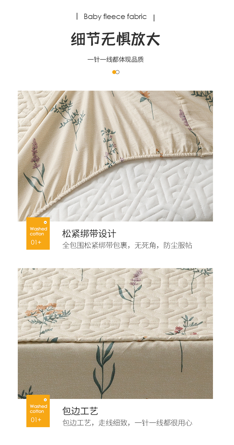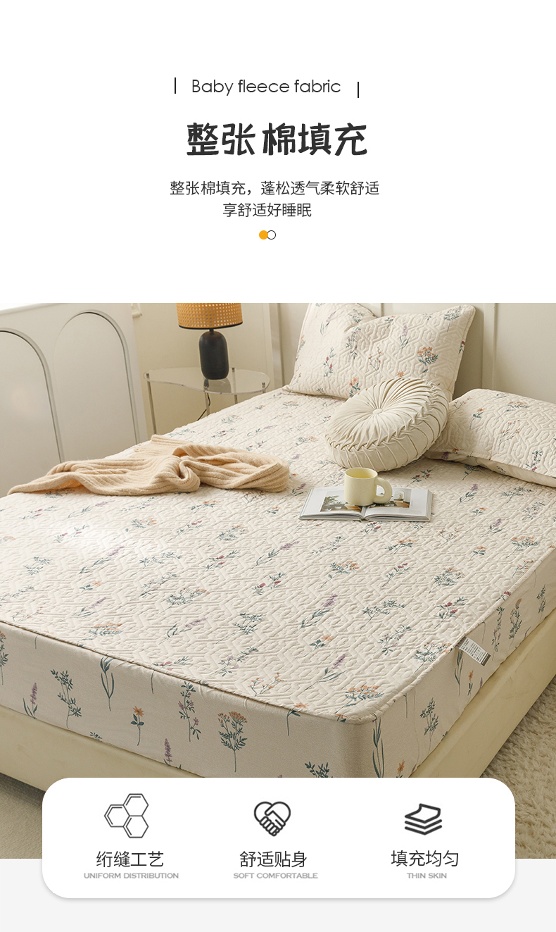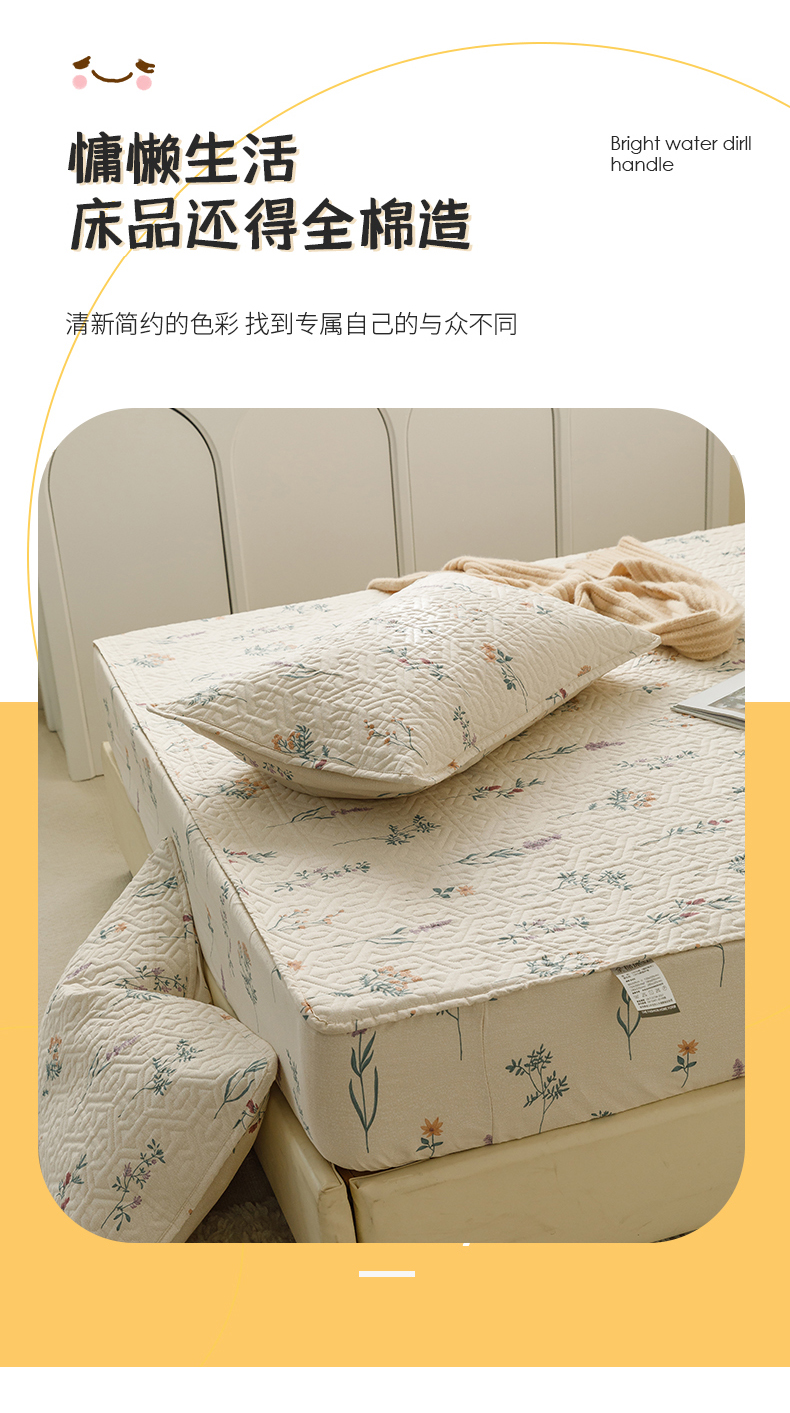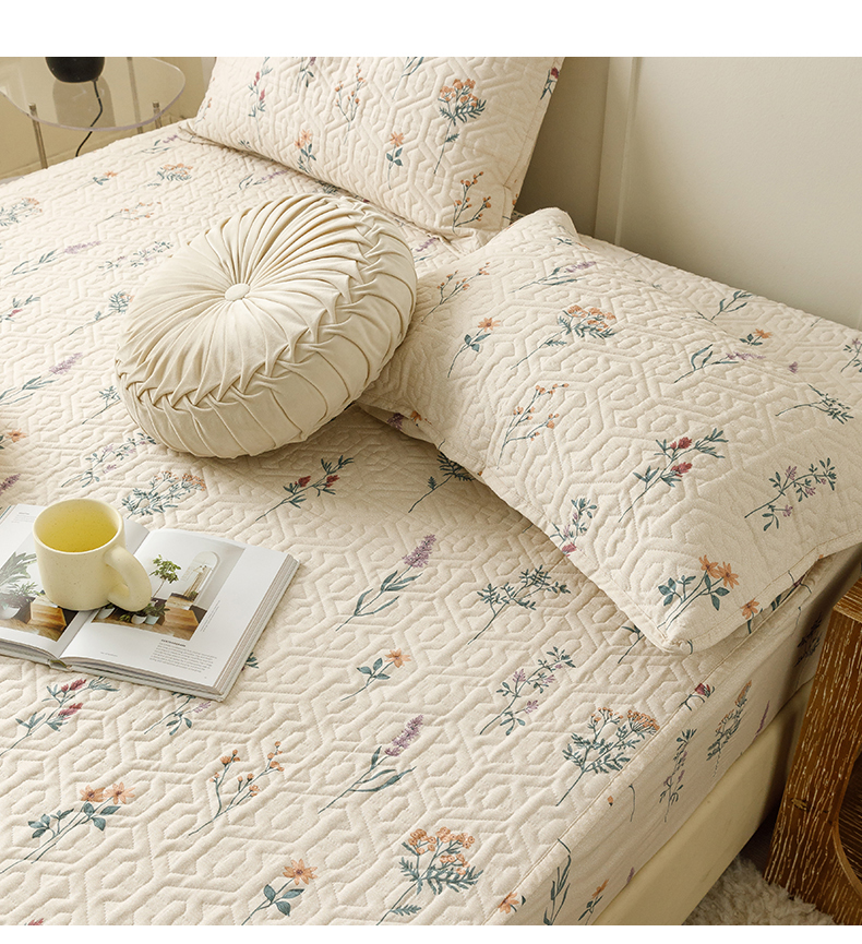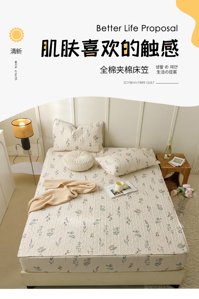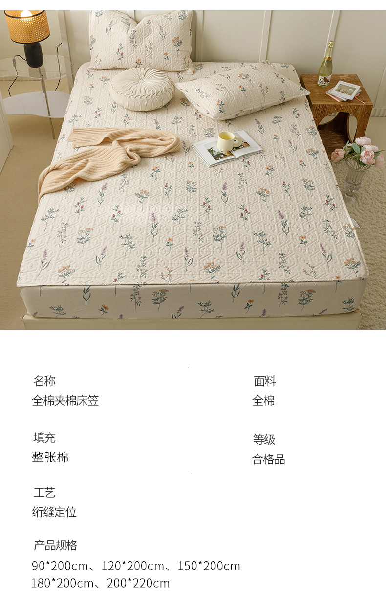 商品名称:忘忧草 2026新款清新简约全棉印花夹棉床笠 四季予你