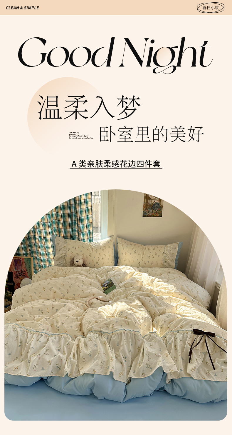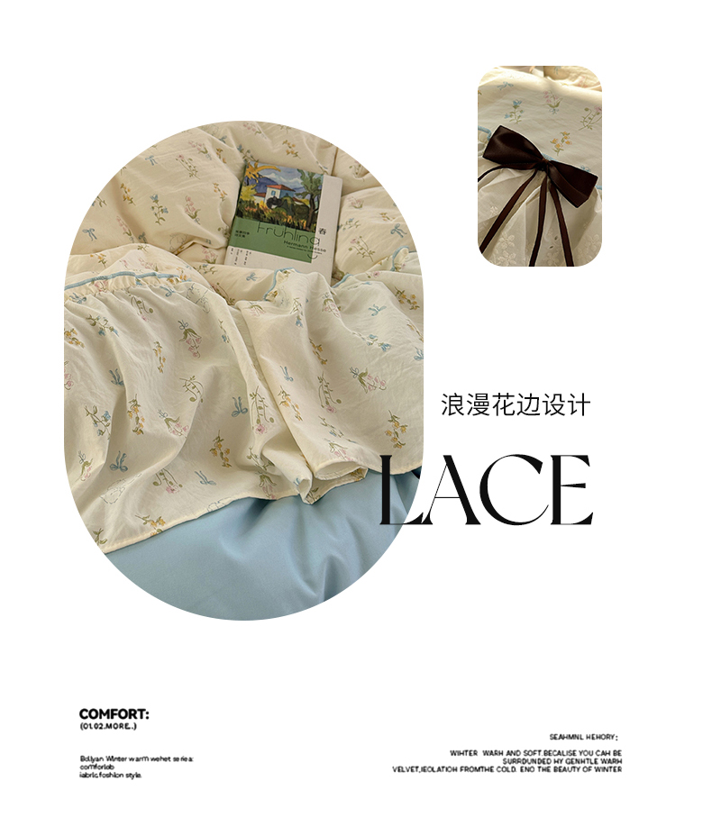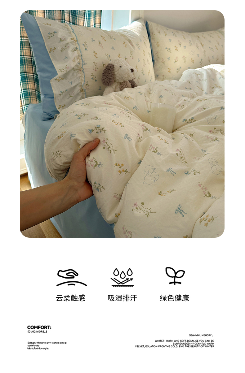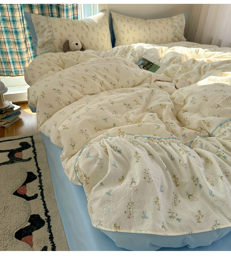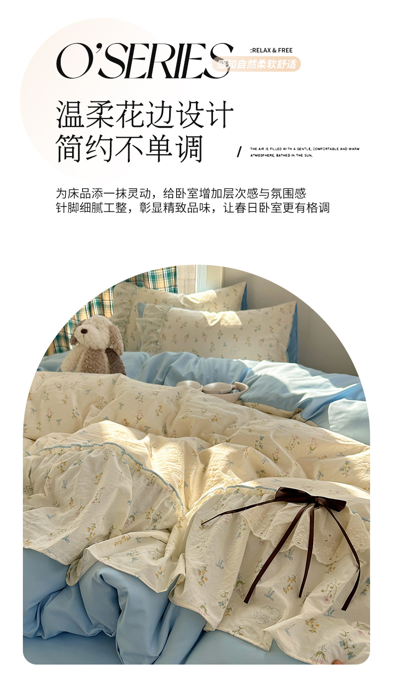当前位置: 91家纺网 > 商品网购 > 床品套件 > 四件套 > 其它四件套 > 凯洛奇 2026新款A类仿棉云朵棉蝴蝶结花边四件套(提供买家秀) 浅蓝甜梦