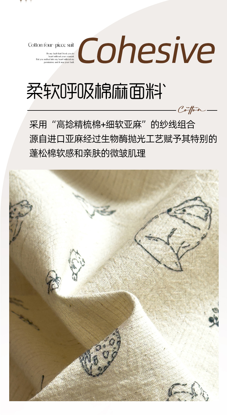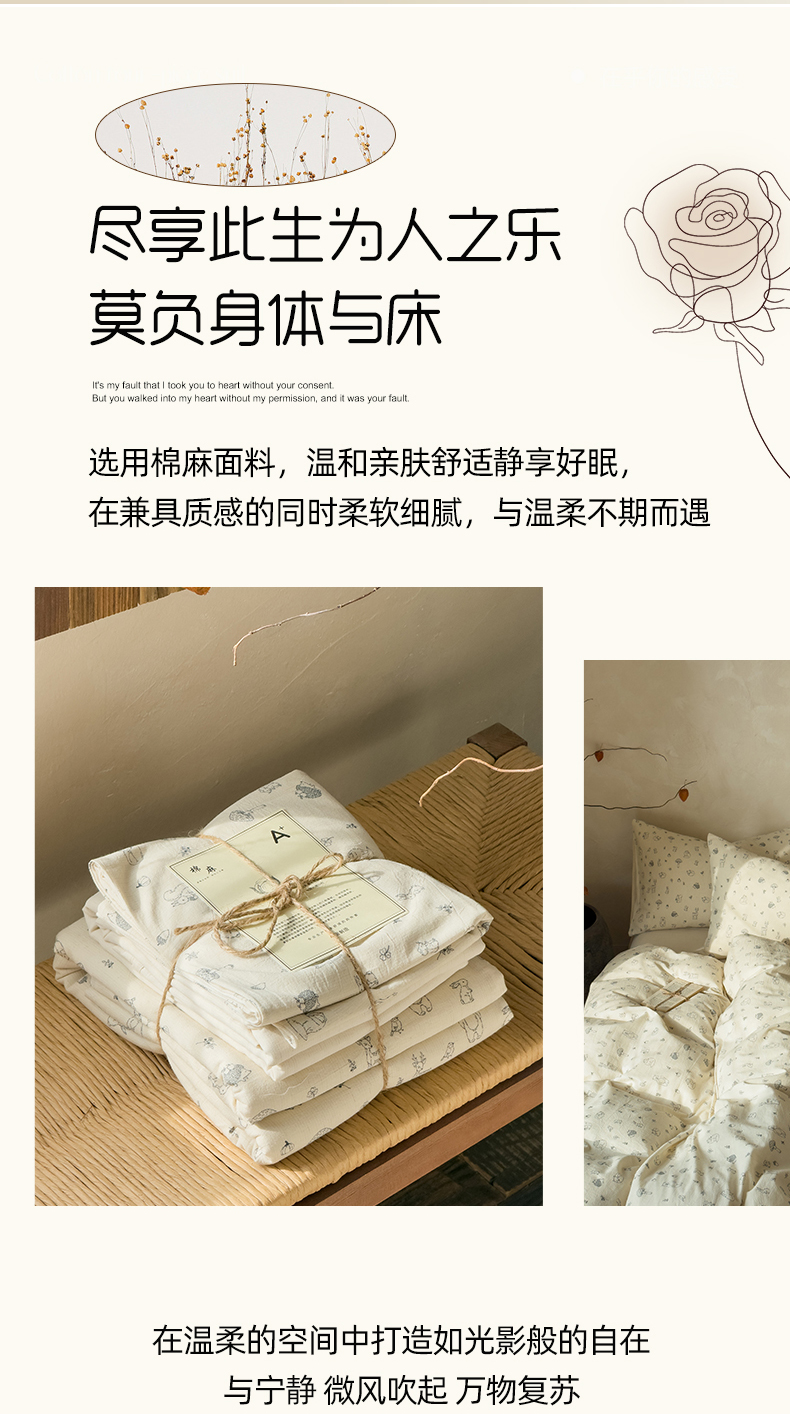 当前位置: 91家纺网 > 商品网购 > 床品套件 > 四件套 > 棉麻四件套 > (总)对白 2026新款A类棉麻文艺风人字纹印花四件套