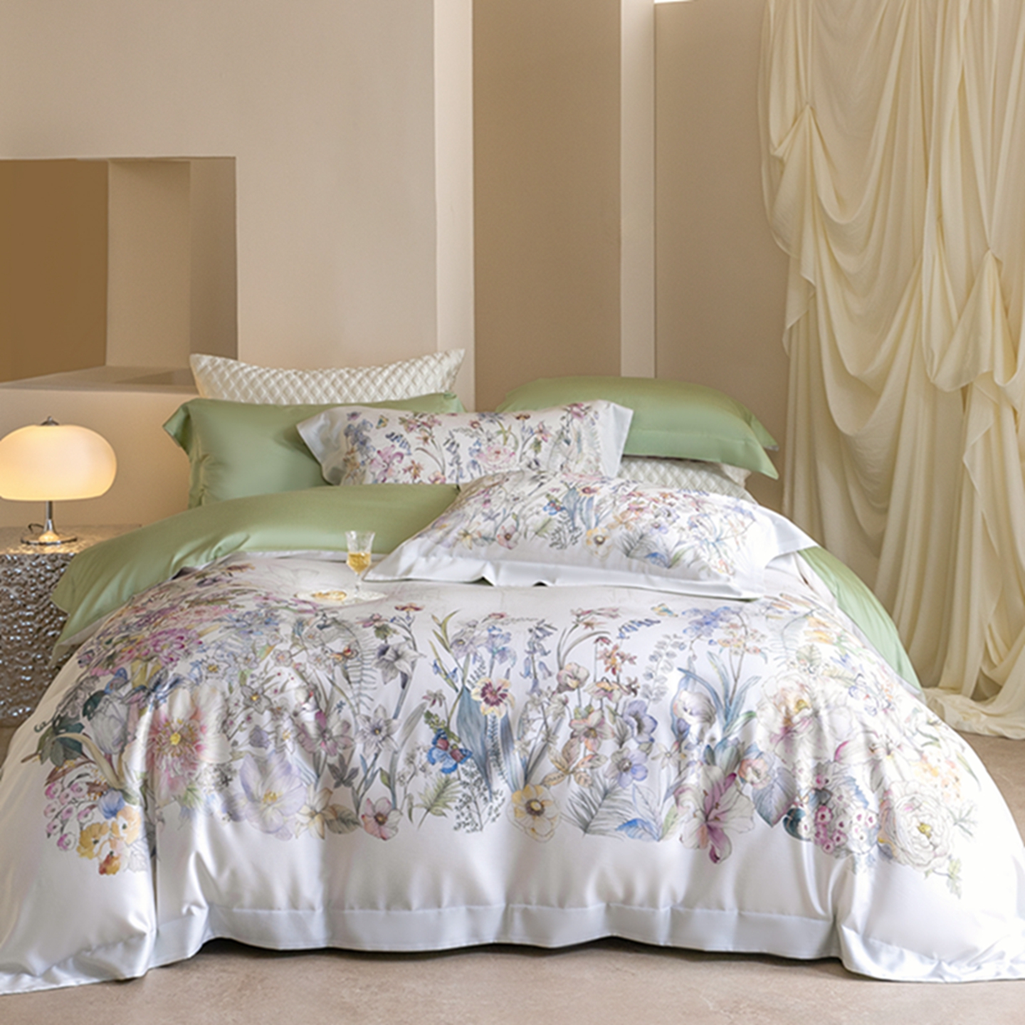 (总)时亿 2023新款金太阳天丝棉磨毛四件套,碧影,德鲁维,繁花 绿,卡里,情调,素音