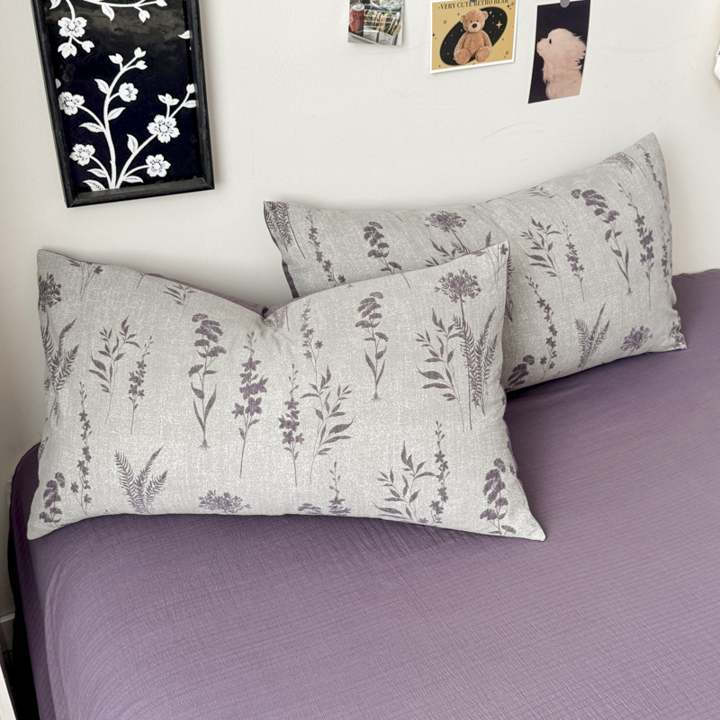 商品名称:雅阁尔家纺 2026新款轻奢复古美拉德风泡芙棉冷淡侘寂风水洗棉双层纱单枕套 紫苏