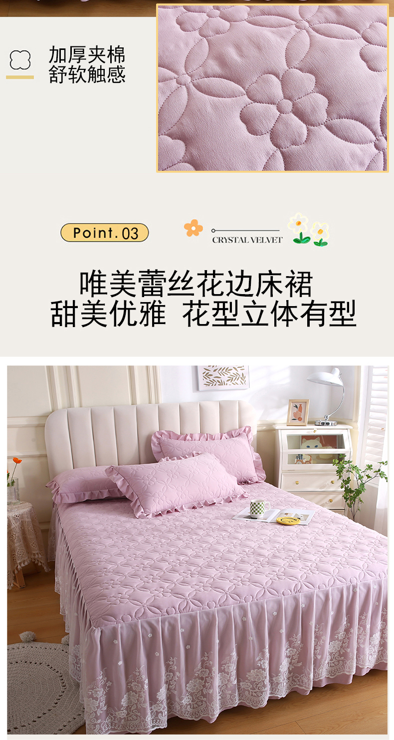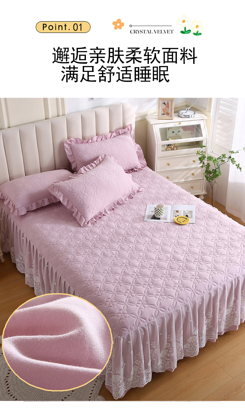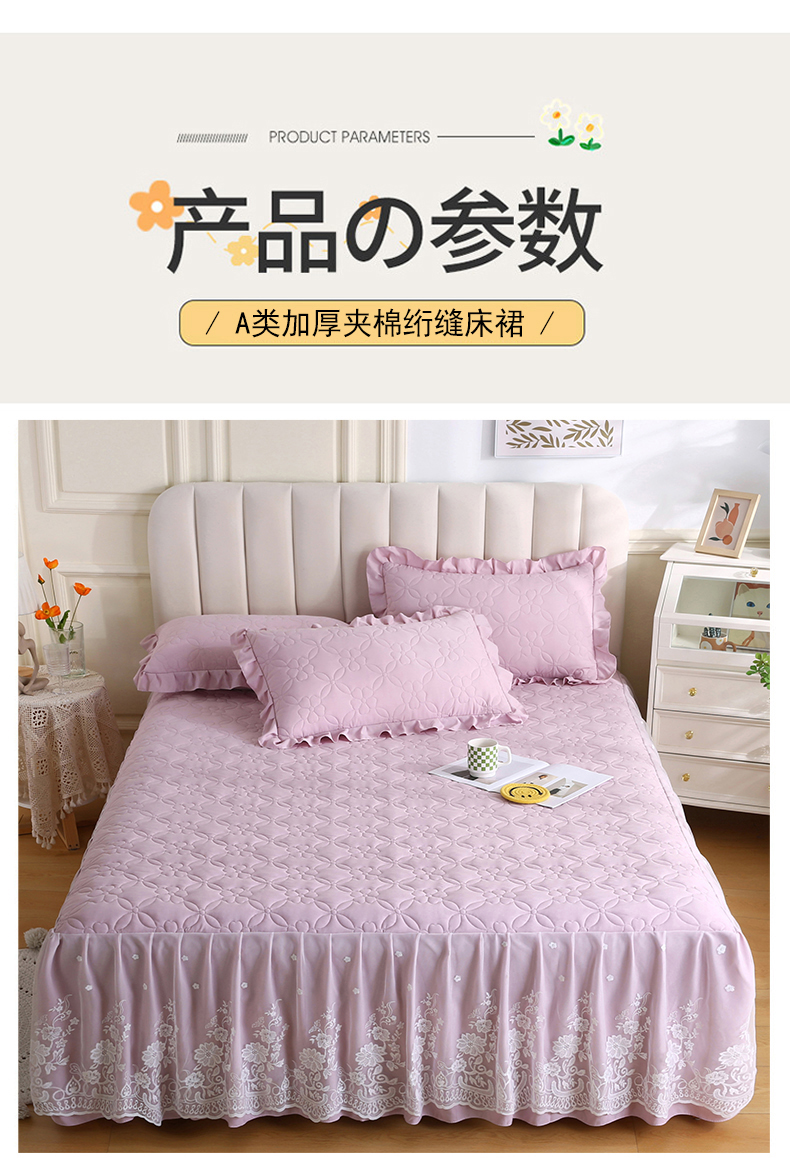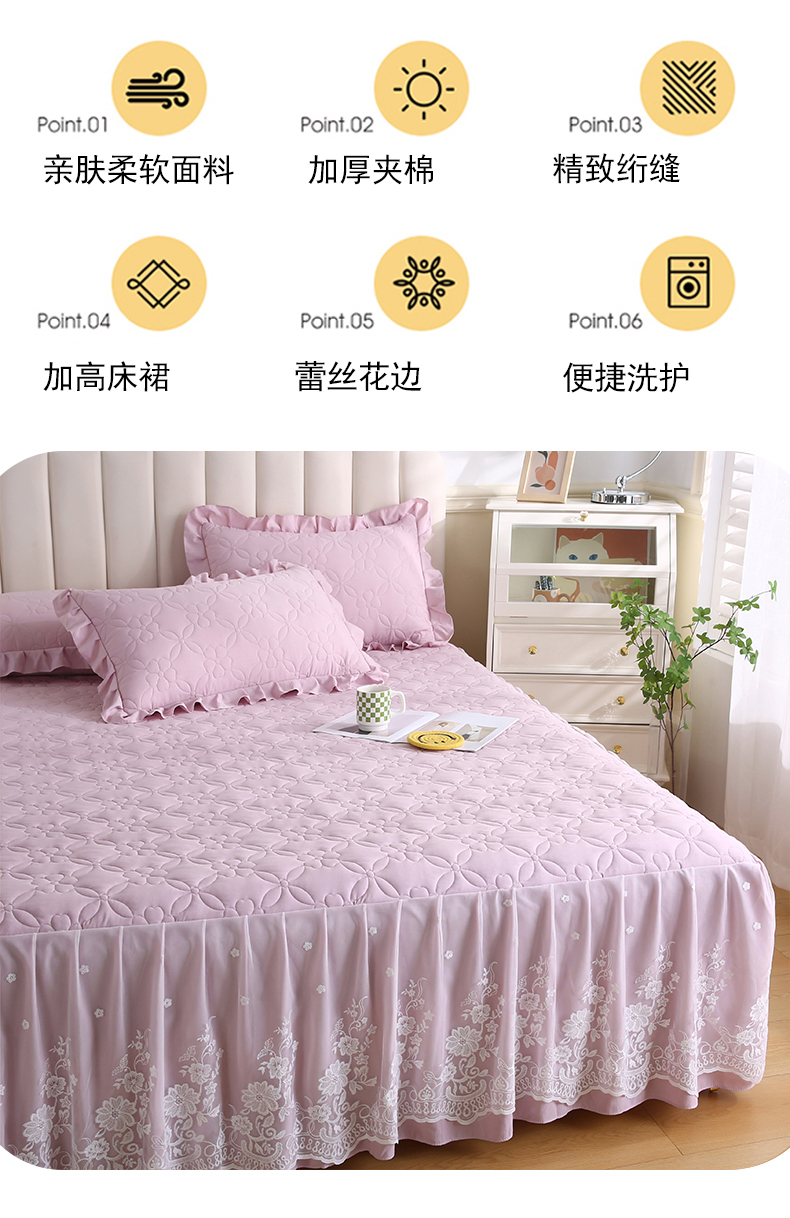 (总)源梦家纺 2024新款幸运草夹棉单床裙,纯白,大红,豆沙,粉色,灰色,兰色,米黄,玉色