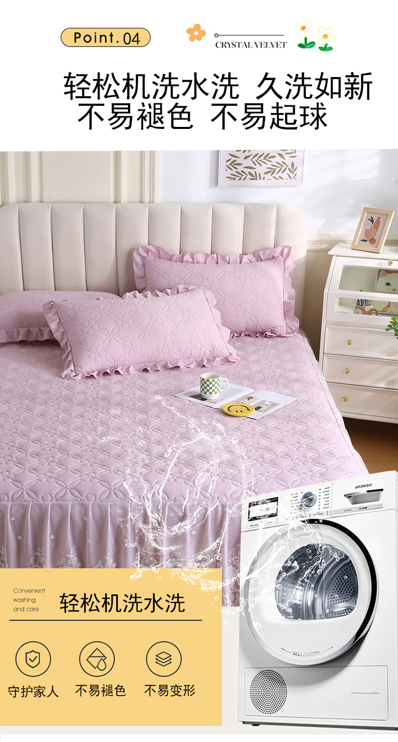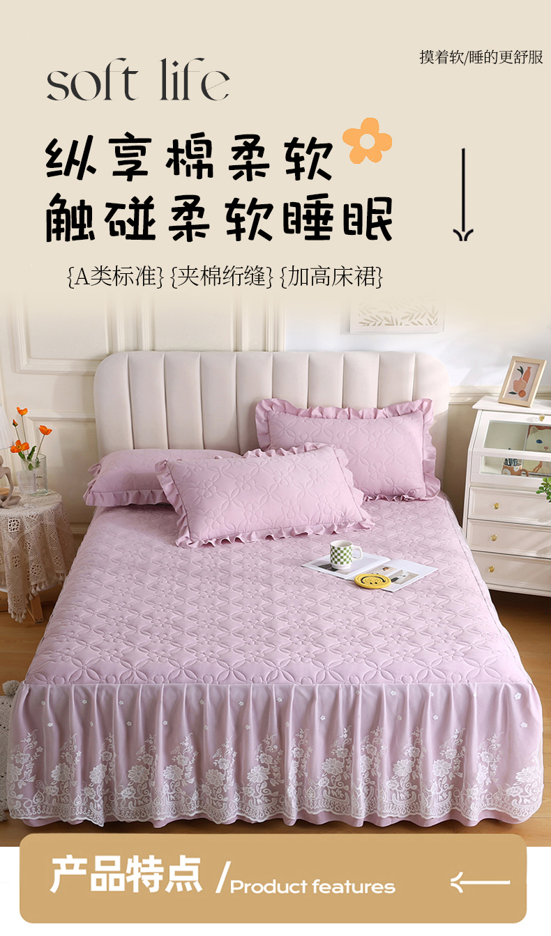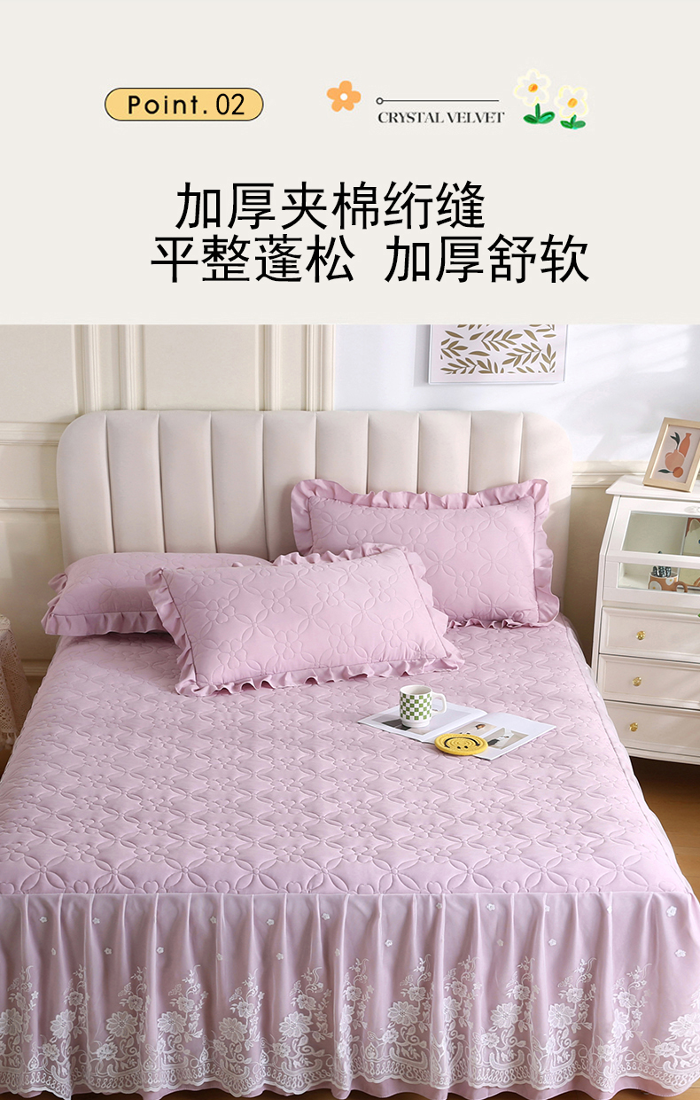 (总)源梦家纺 2024新款幸运草夹棉单床裙,纯白,大红,豆沙,粉色,灰色,兰色,米黄,玉色