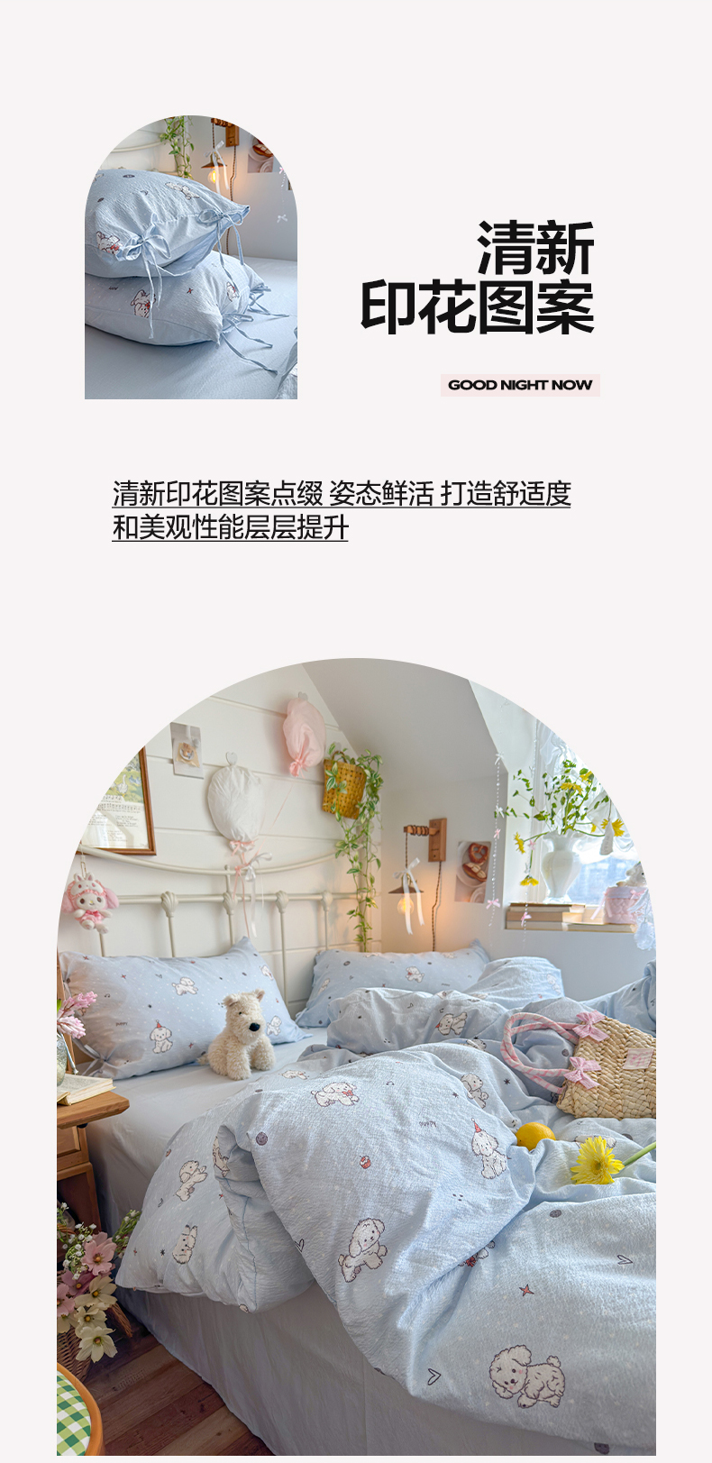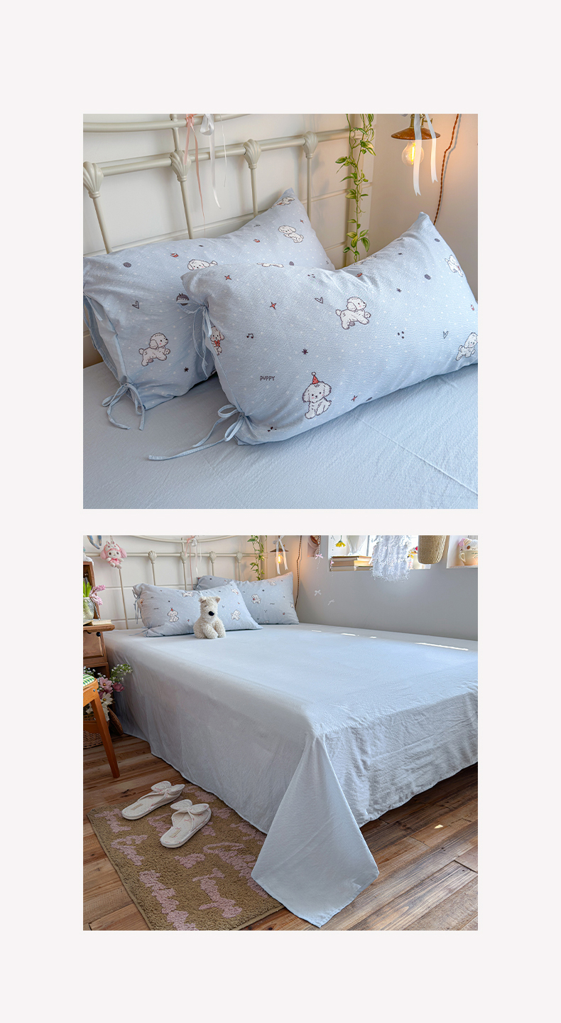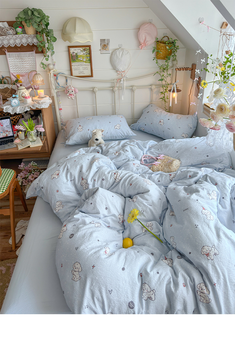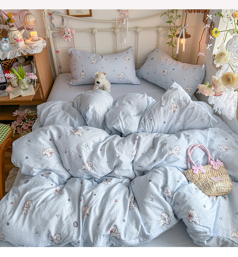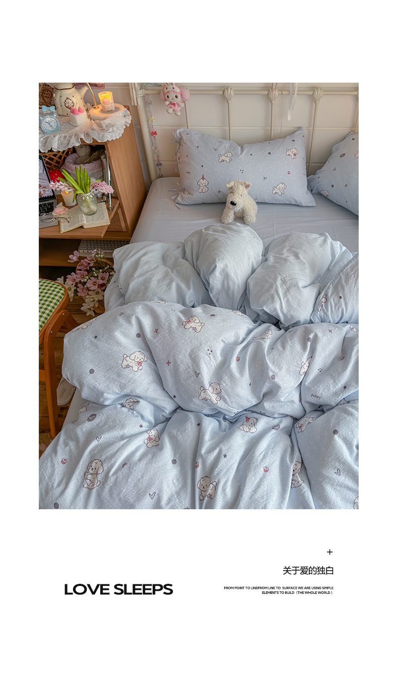 当前位置: 91家纺网 > 商品网购 > 床品套件 > 四件套 > 双层纱四件套 > 优选 2026新款小清新直播热卖款云感双层纱木棉四件套系列(小红书热款推荐) 可爱修狗
