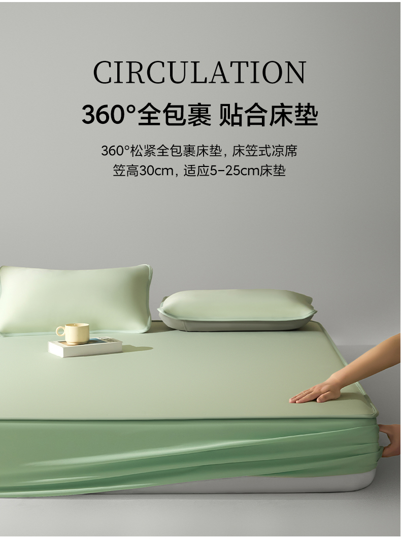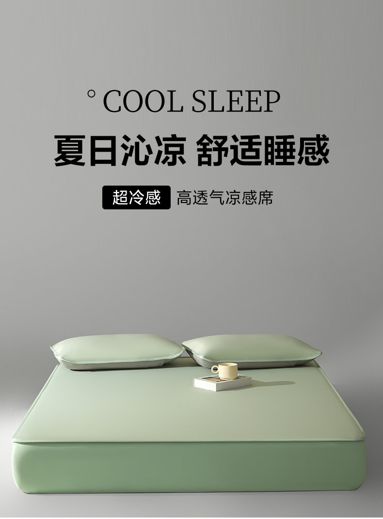 商品名称:禧澜庭 2026春夏新款锦纶凉感冰丝云母凉席可水洗折叠床笠空调席 柳青绿