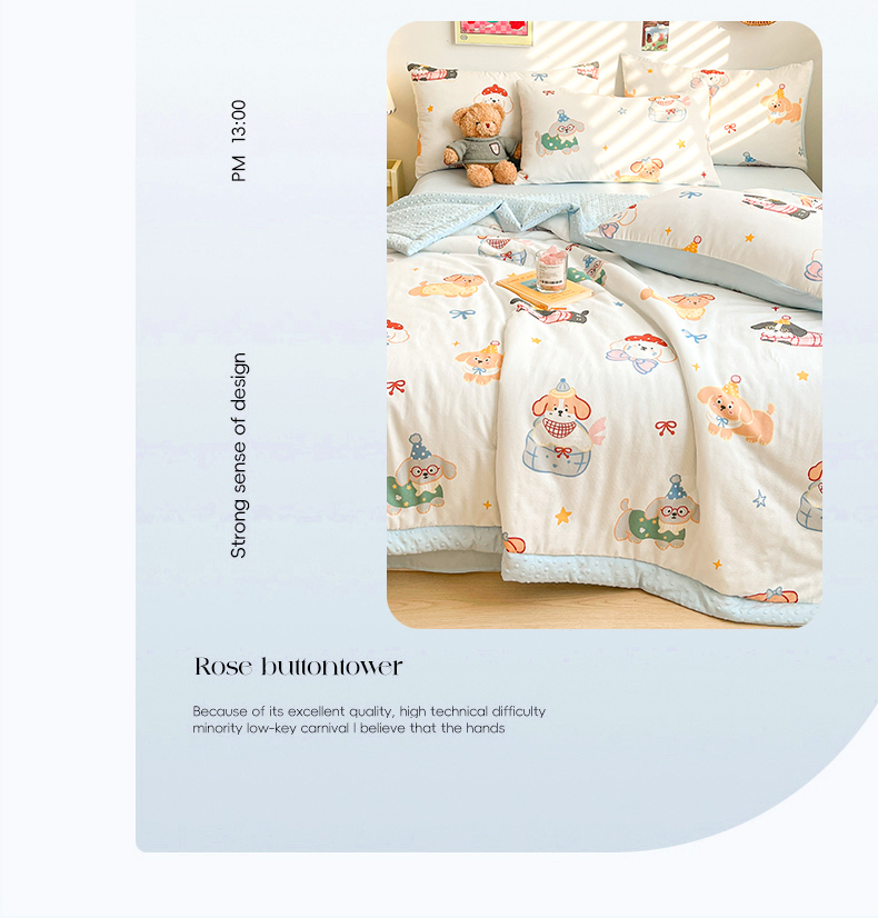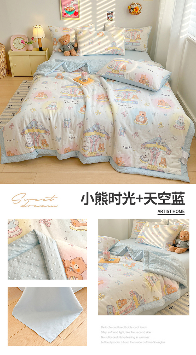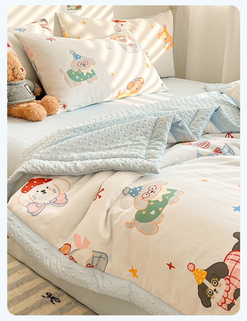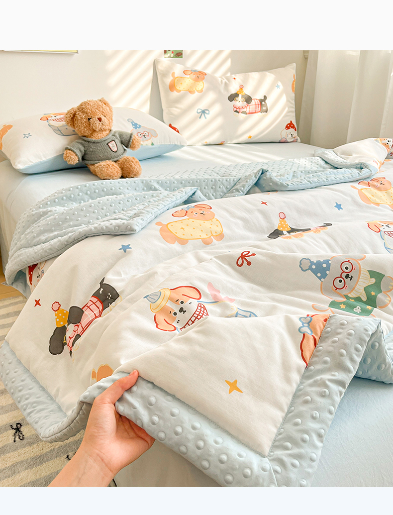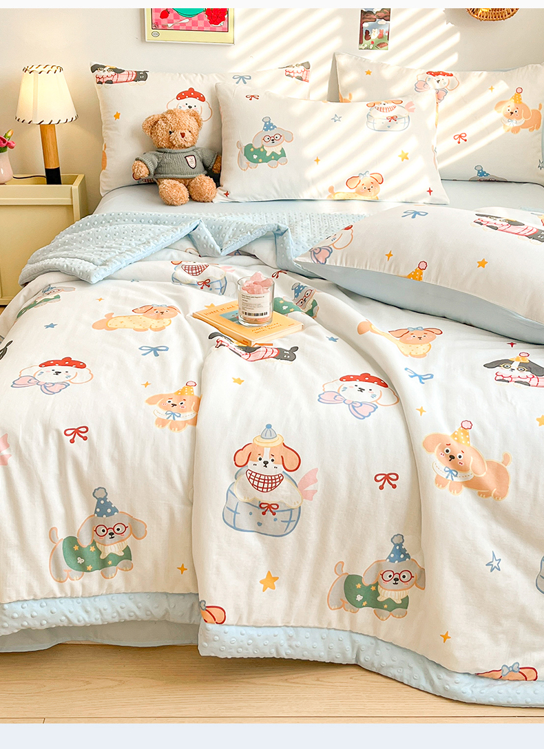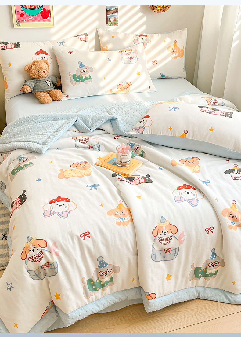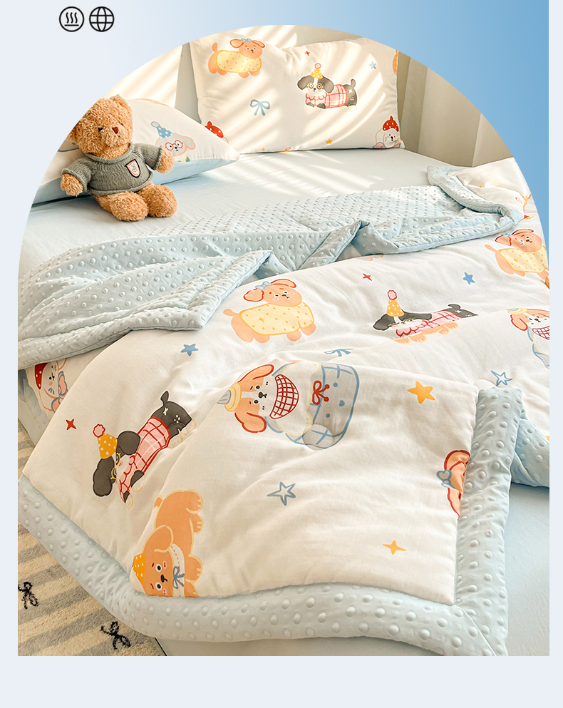 盛秋家纺 2026新款A类水洗棉豆豆夏被系列 狗狗游园+天空蓝