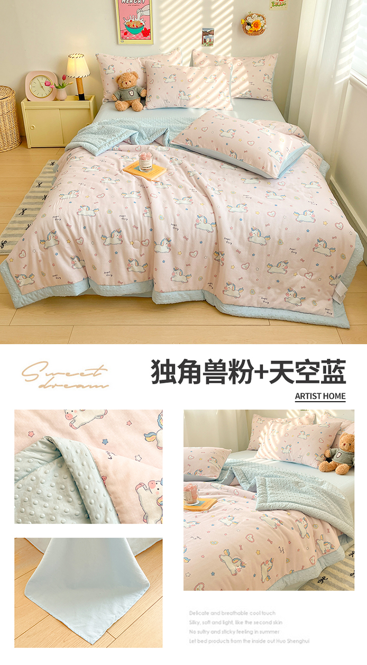 • 91家纺网 家纺一手货源 找家纺 盛秋家纺 2026新款A类水洗棉豆豆夏被系列 狗狗游园+天空蓝