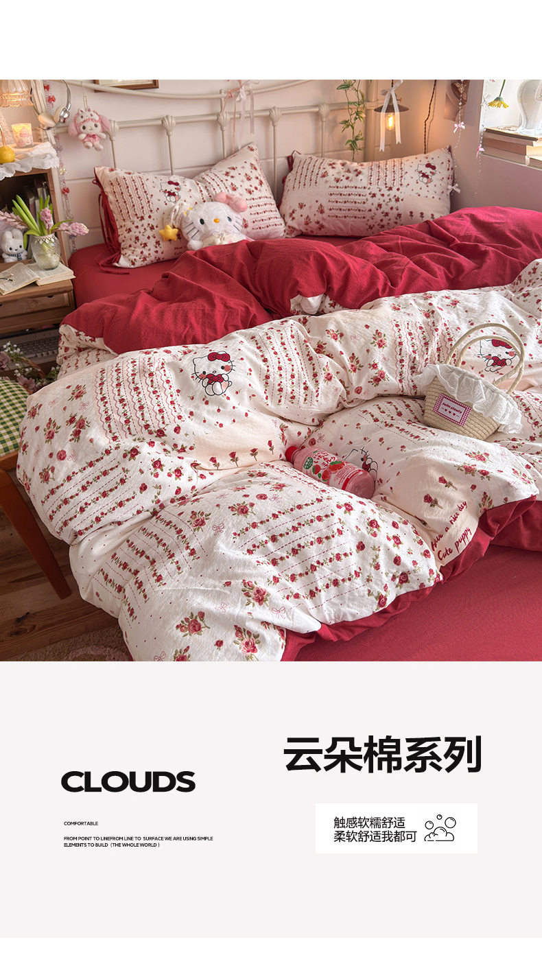 当前位置: 91家纺网 > 商品网购 > 床品套件 > 四件套 > 双层纱四件套 > 优选良品 2026新款小清新直播热卖款云感双层纱木棉四件套系列(小红书热款推荐) 浪漫kt