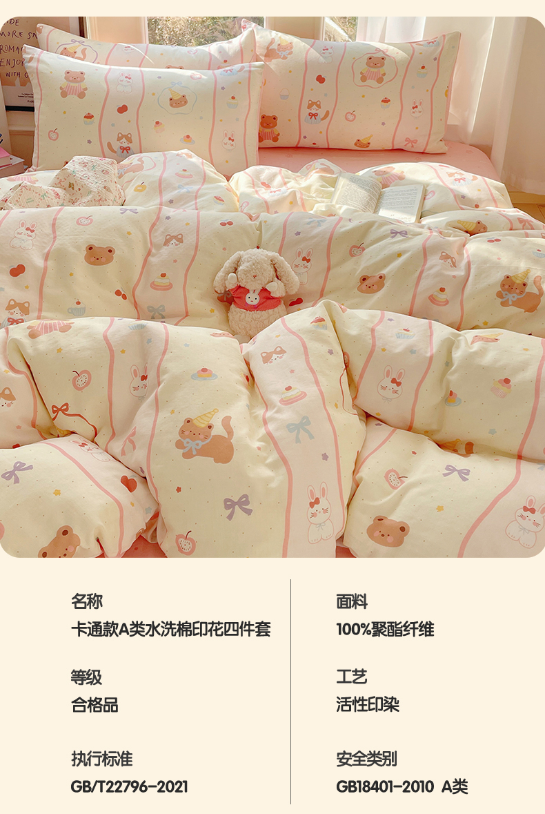 当前位置: 91家纺网 > 商品网购 > 床品套件 > 四件套 > 水洗棉四件套 > 盛秋家纺 2026新款水洗棉印花四件套-卡通系列 甜茶日记+花朵粉