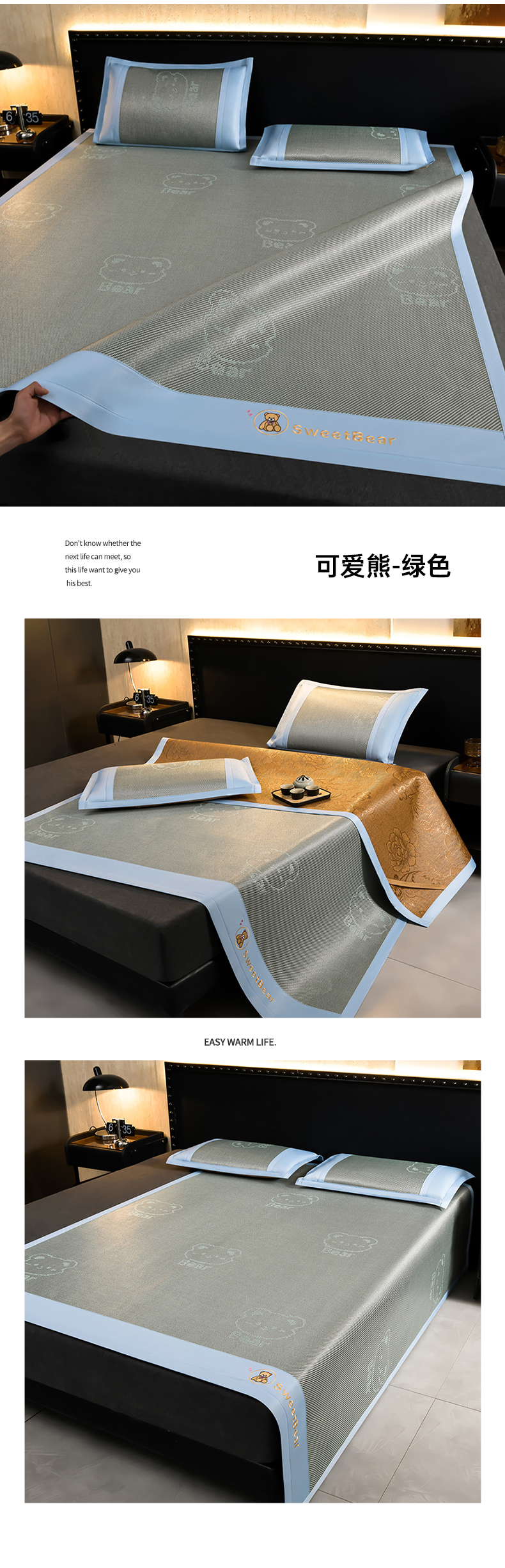 当前位置: 91家纺网 > 商品网购 > 床上用品 > 凉席 > 冰丝席 > (总)苏迪网销供货 2026新款冰藤席可爱熊刺绣款凉席藤席双面可用冰丝席