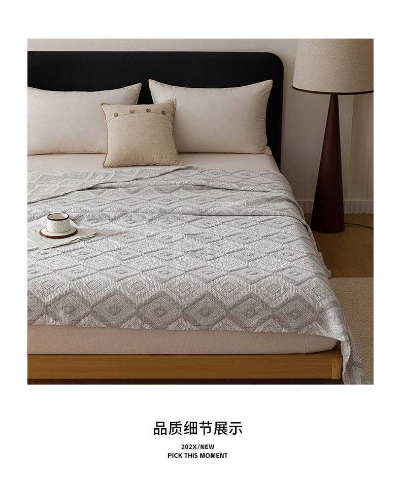 商品名称:悦然毛巾被 2026新款全棉外贸条纹格子纱布盖毯 极简灰