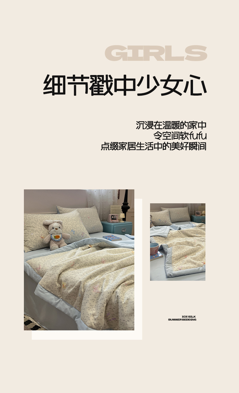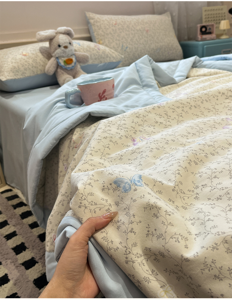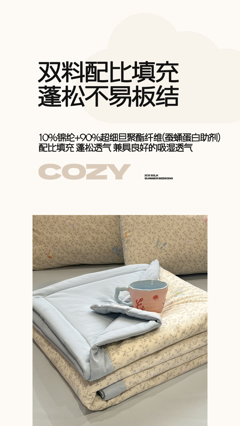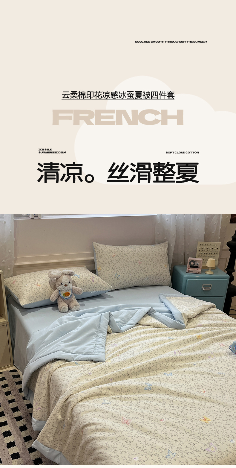 • 91家纺网 家纺一手货源 找家纺 一加一 2026新款云柔棉印花凉感冰蚕夏被夏凉被空调被四件套 相思