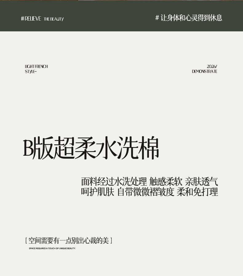 • 91家纺网 家纺一手货源 找家纺 (总)一加一 2026新款全棉无印超柔水洗色织凉感夏被四件套-日式云柔,冬至白,秋分白,秋分咖,小满灰,小满棕