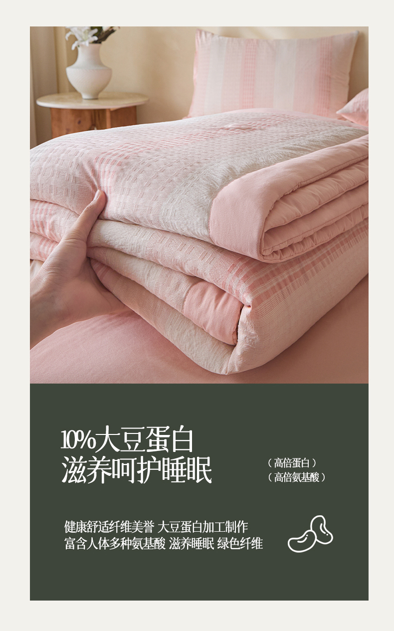 • 91家纺网 家纺一手货源 找家纺 一加一 2026新款凉感提花大豆夏被夏凉被空调被四件套-简约生活 组合图仅供展示不可下单