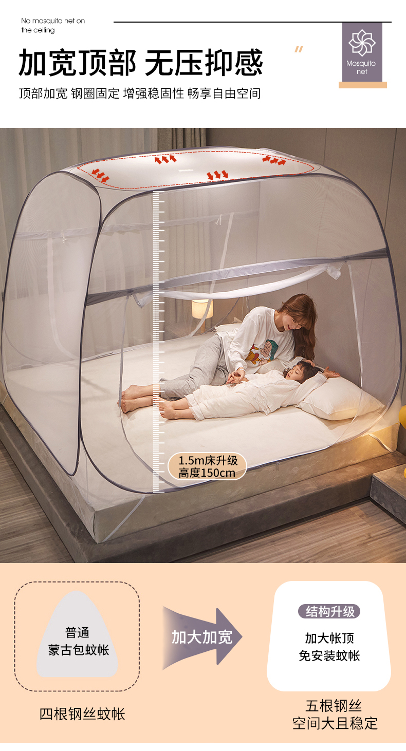 当前位置: 91家纺网 > 商品网购 > 床上用品 > 蚊帐 > 坐床式蚊帐 > 豪梦园蚊帐工厂店 2026新款免安装促量款加密方顶蚊帐 防尘顶-清新灰