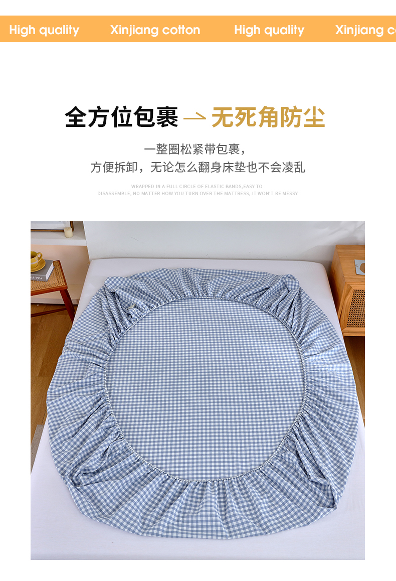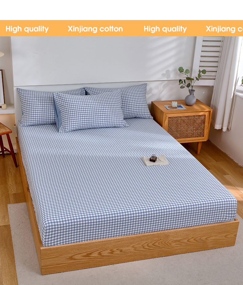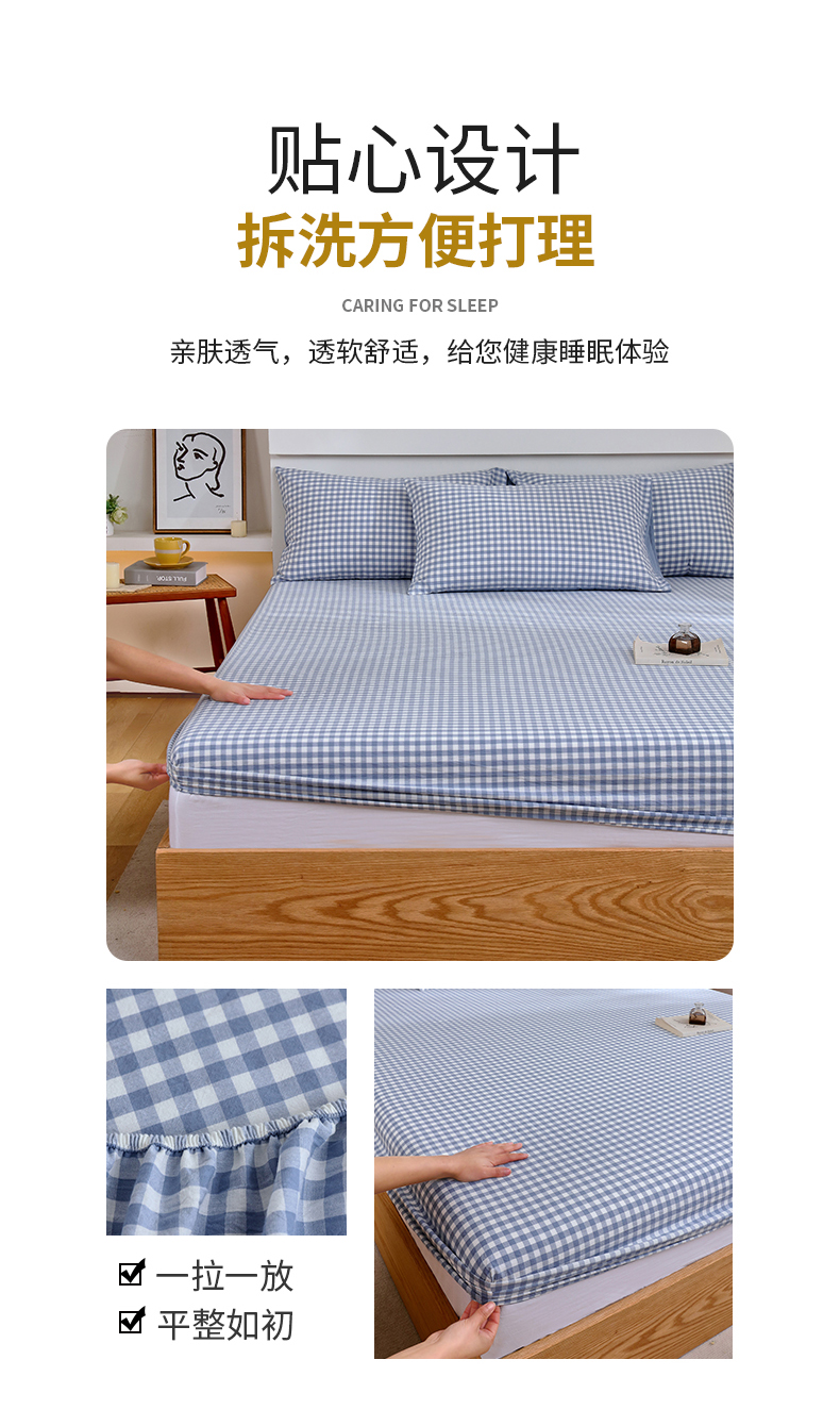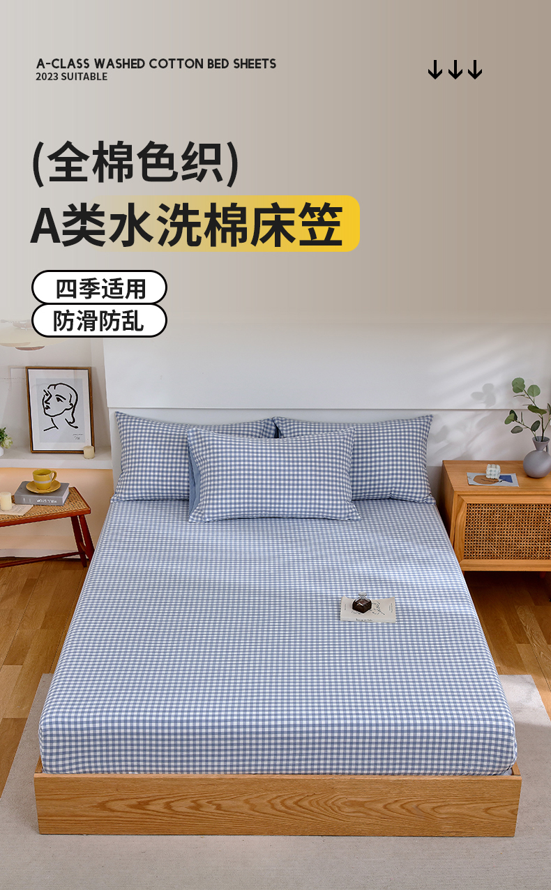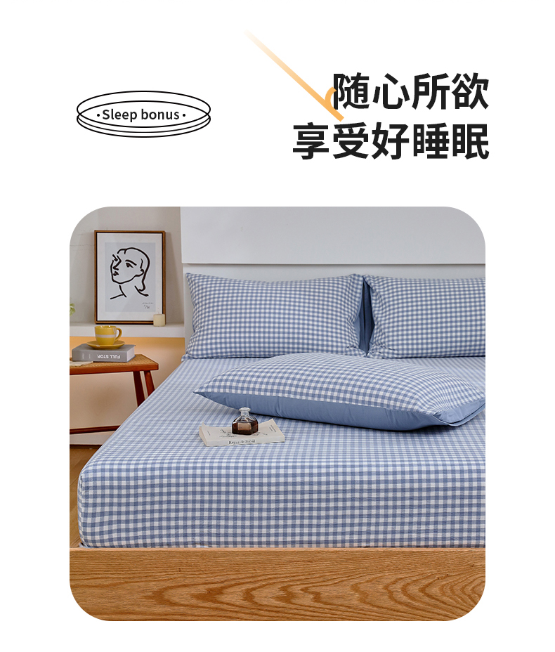 春皖家纺 2026新款色织AB版水洗棉三件套四件套单品系列(单床笠-A版风格一) 素雅-蓝小格