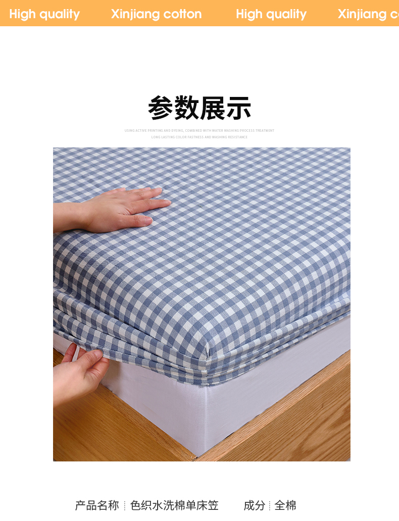 商品名称:春皖家纺 2026新款色织AB版水洗棉三件套四件套单品系列(单床笠-A版风格一) 素雅-蓝小格