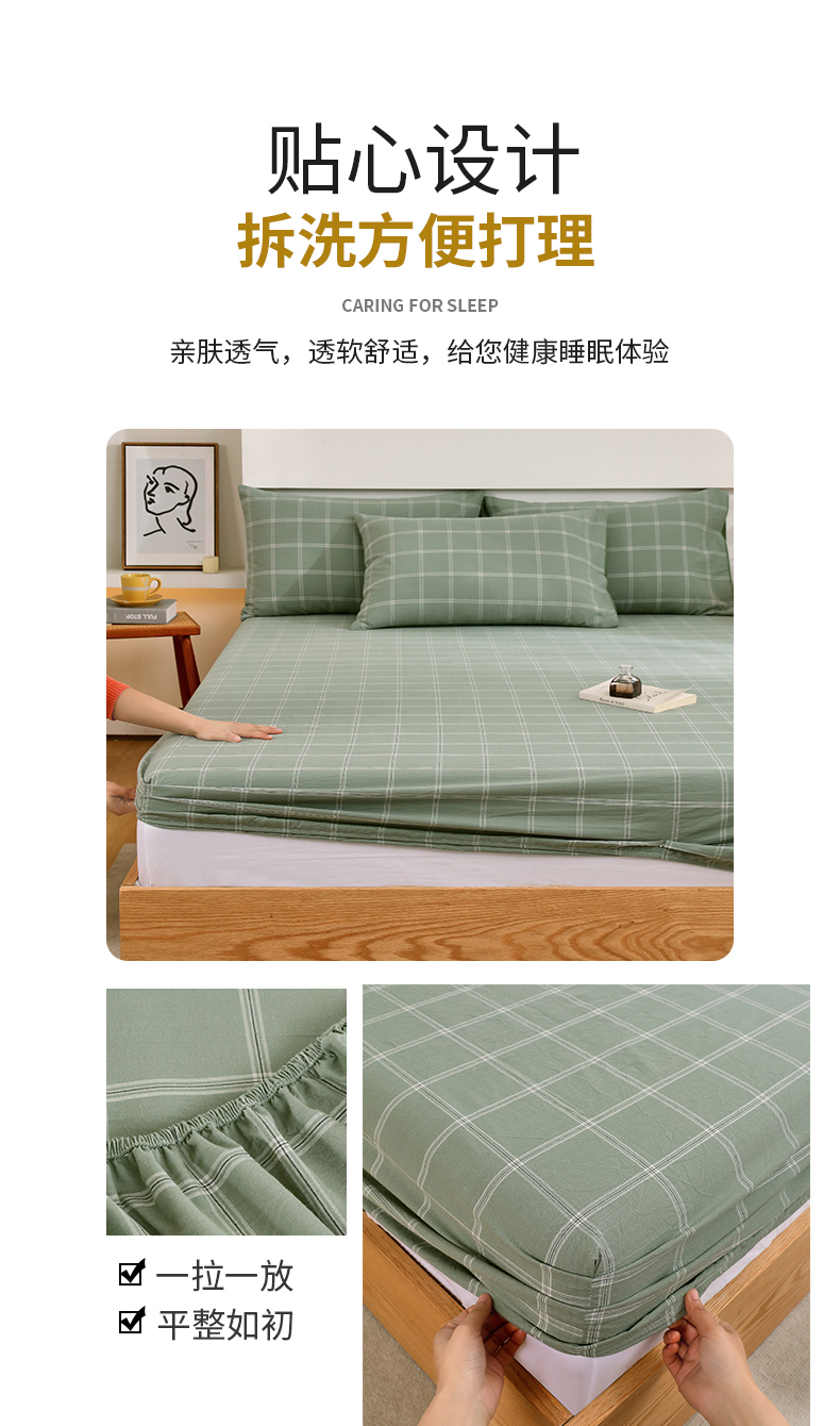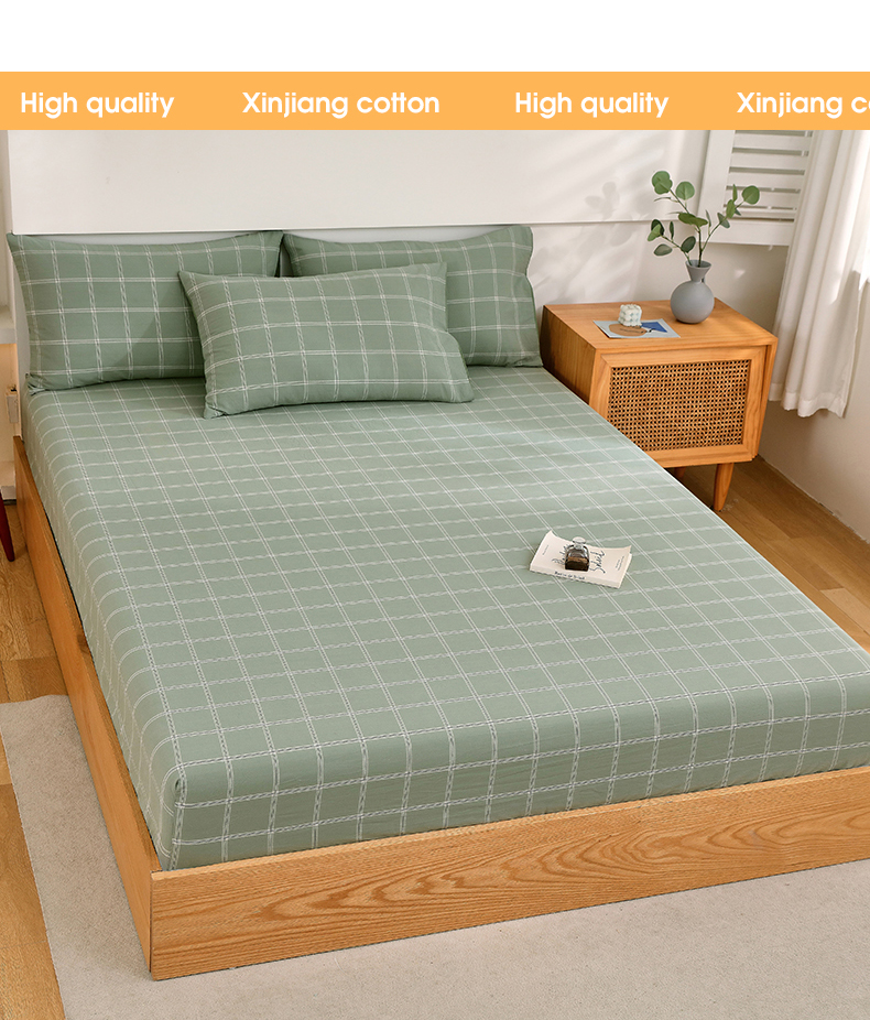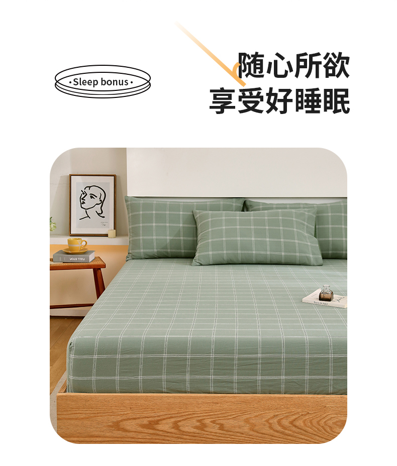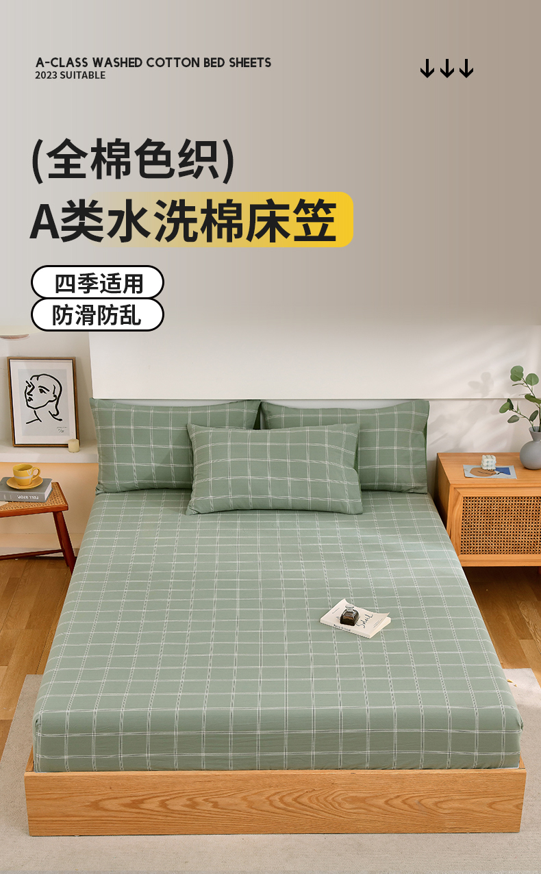春皖家纺 2026新款色织AB版水洗棉三件套四件套单品系列(单床笠-A版风格一) 素雅-韵绿