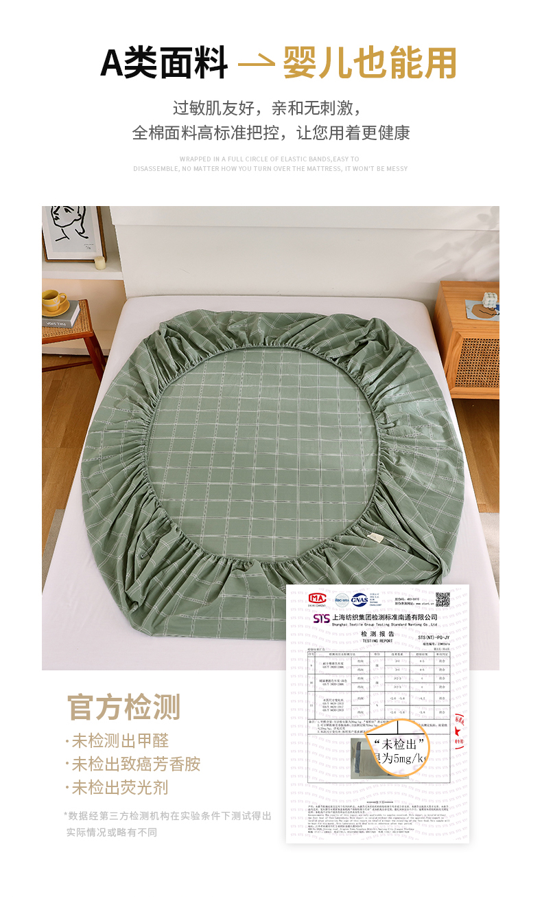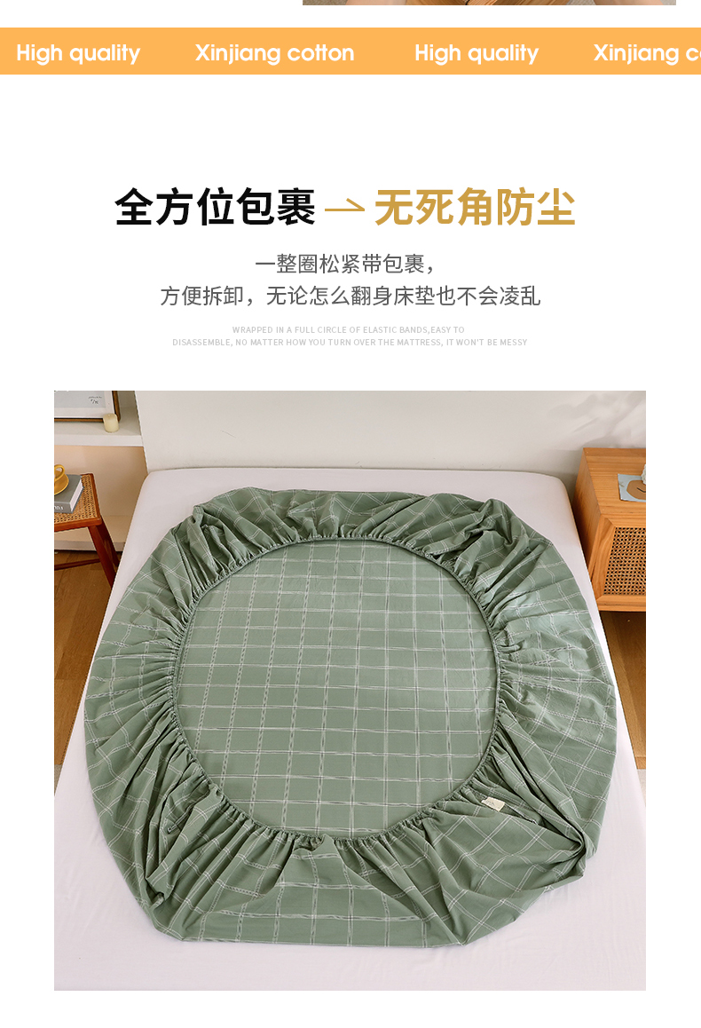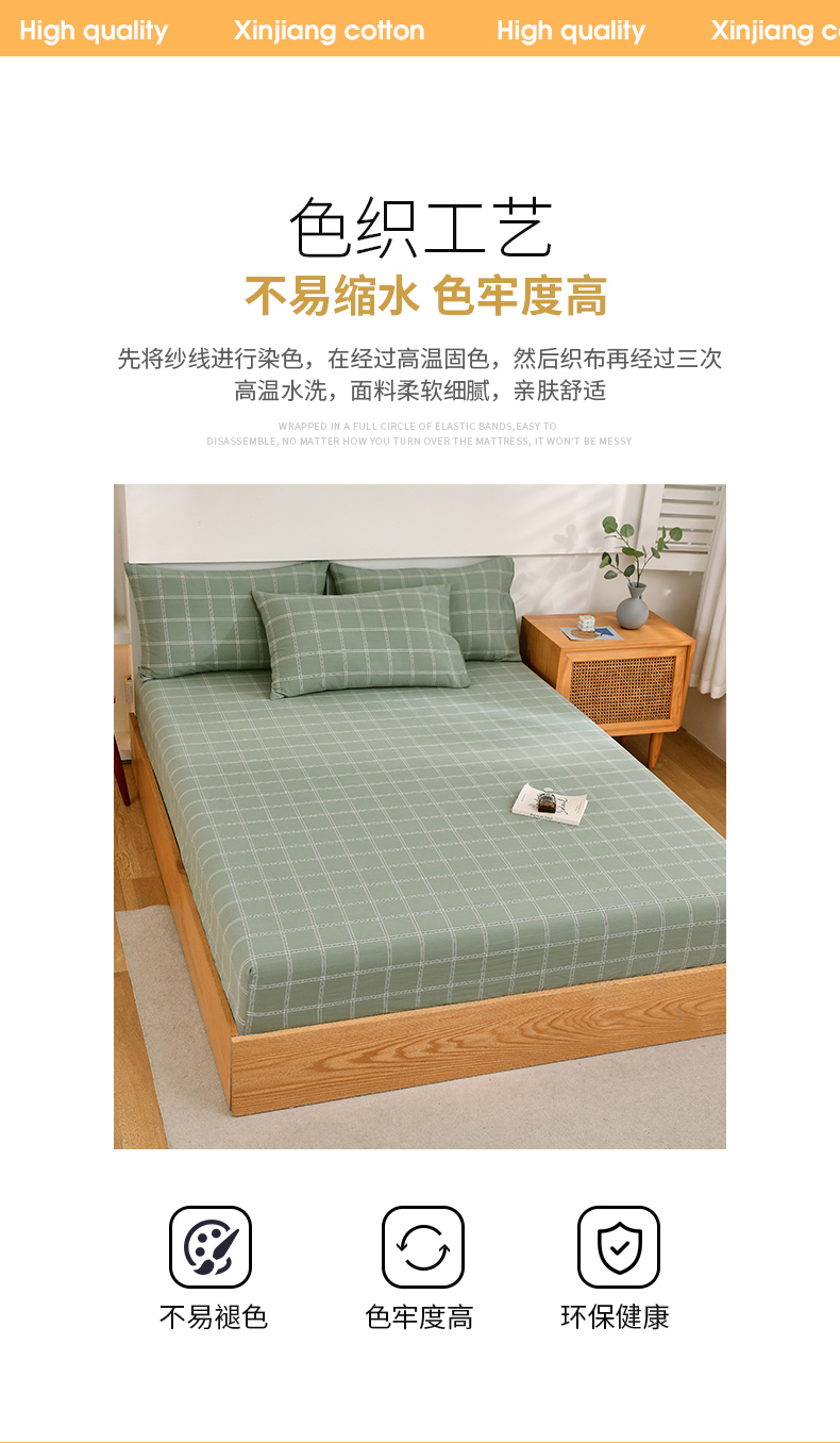 春皖家纺 2026新款色织AB版水洗棉三件套四件套单品系列(单床笠-A版风格一) 素雅-韵绿