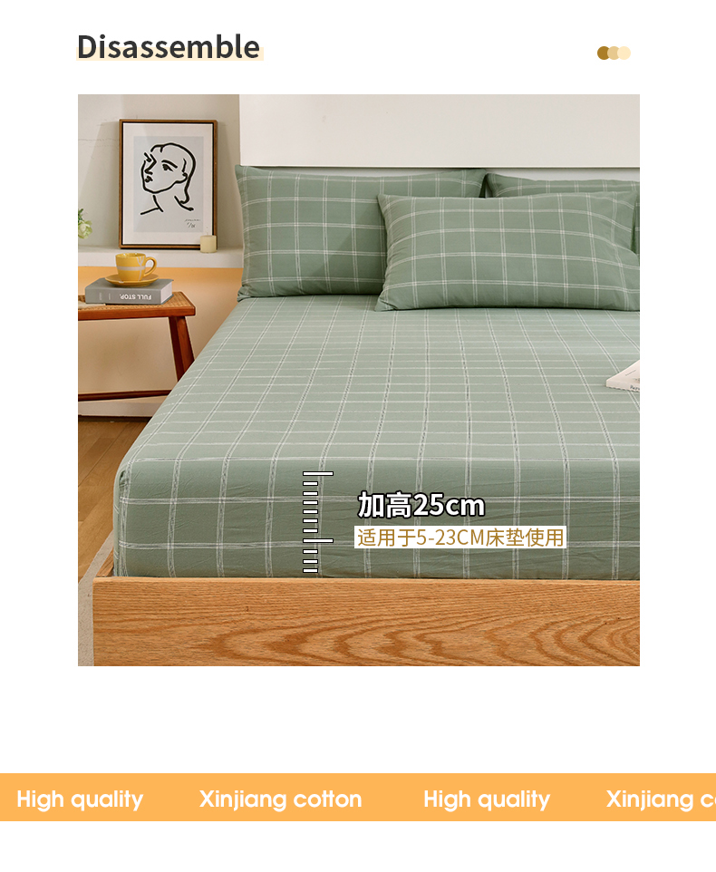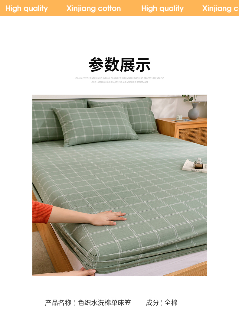 商品名称:春皖家纺 2026新款色织AB版水洗棉三件套四件套单品系列(单床笠-A版风格一) 素雅-韵绿