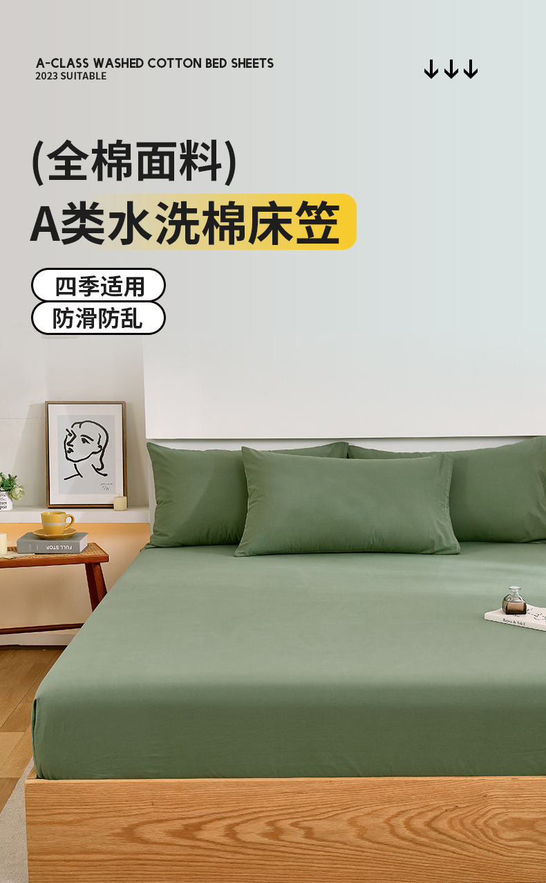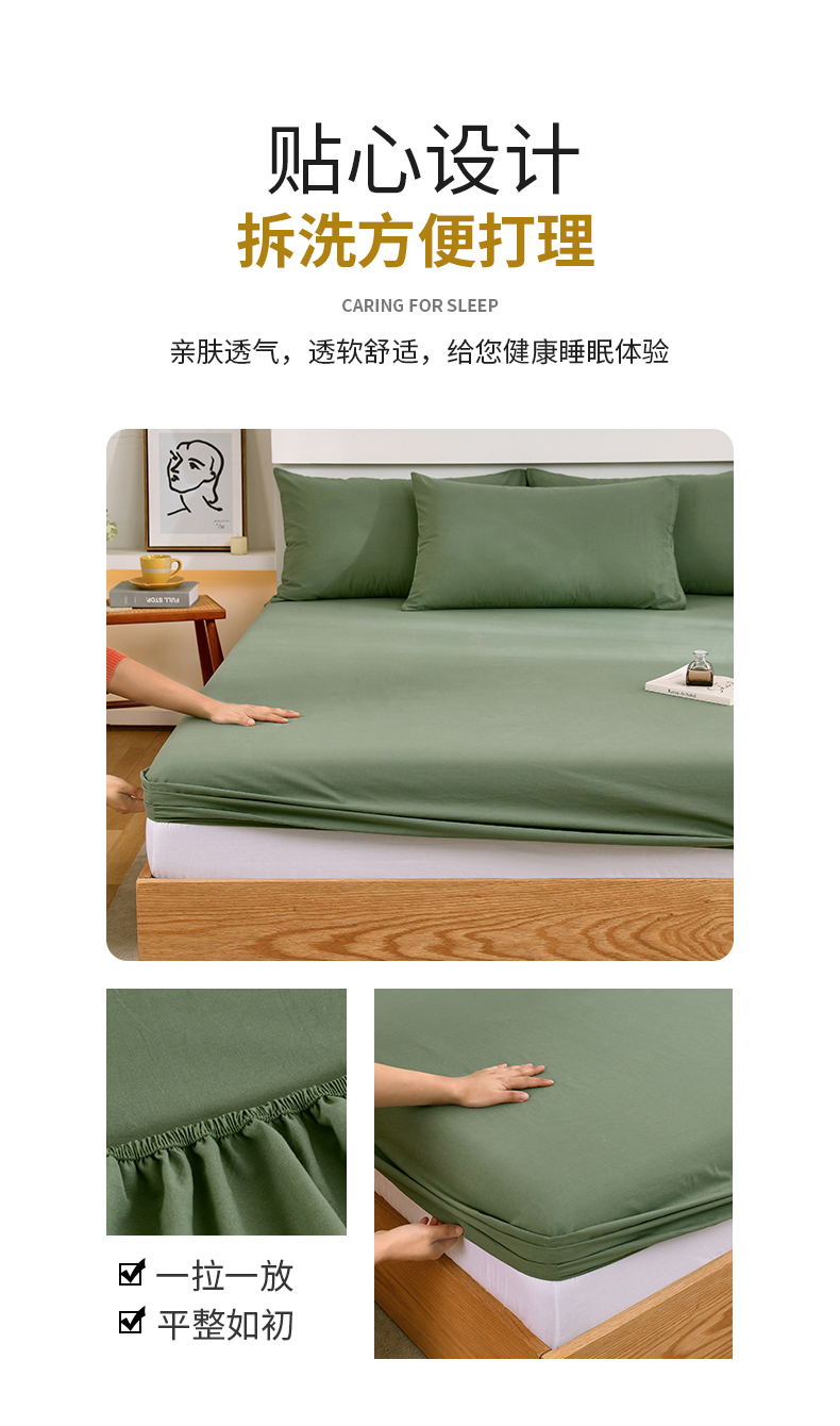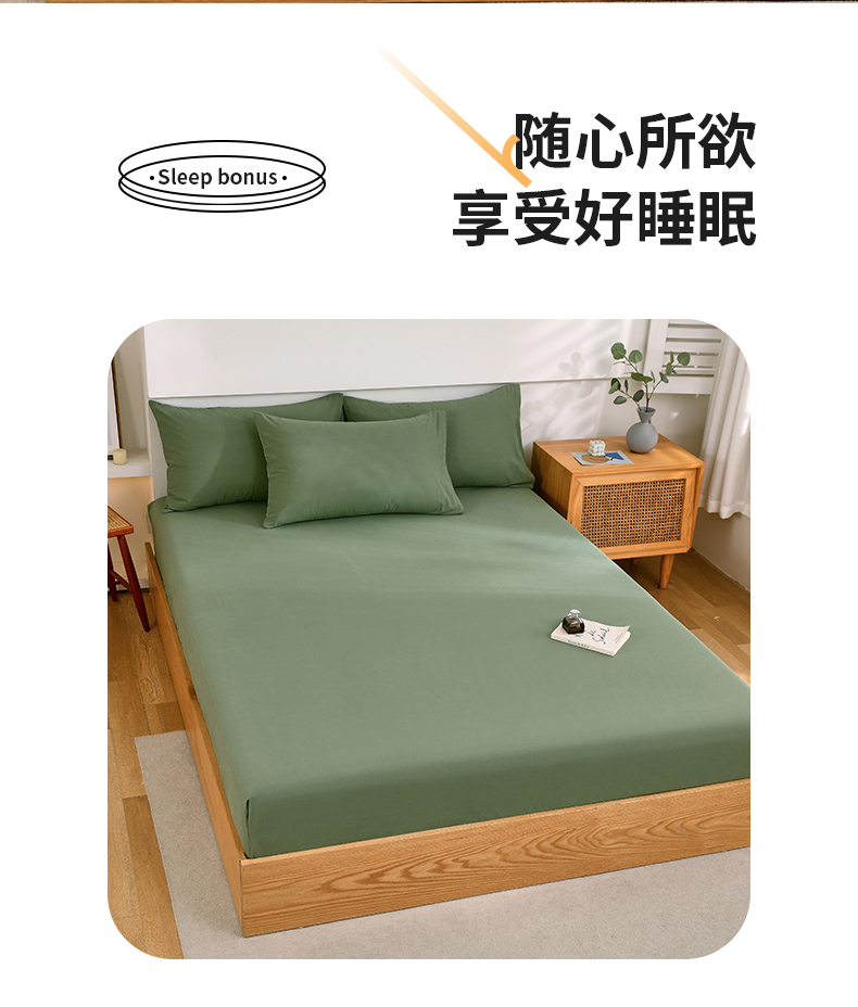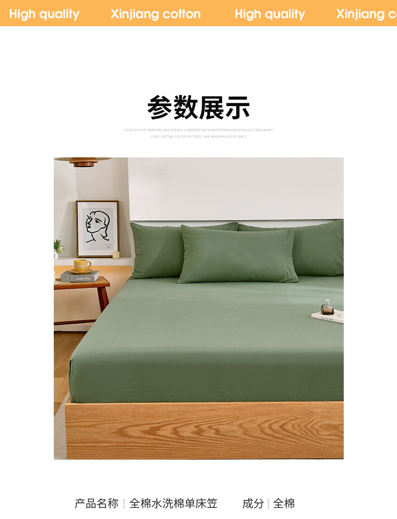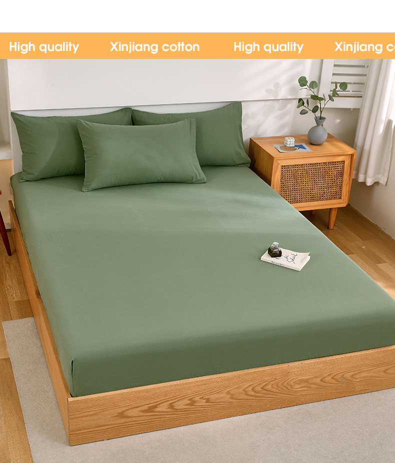商品名称:春皖家纺 2026新款色织AB版水洗棉三件套四件套单品系列(单床笠-B版风格一) 素雅军绿